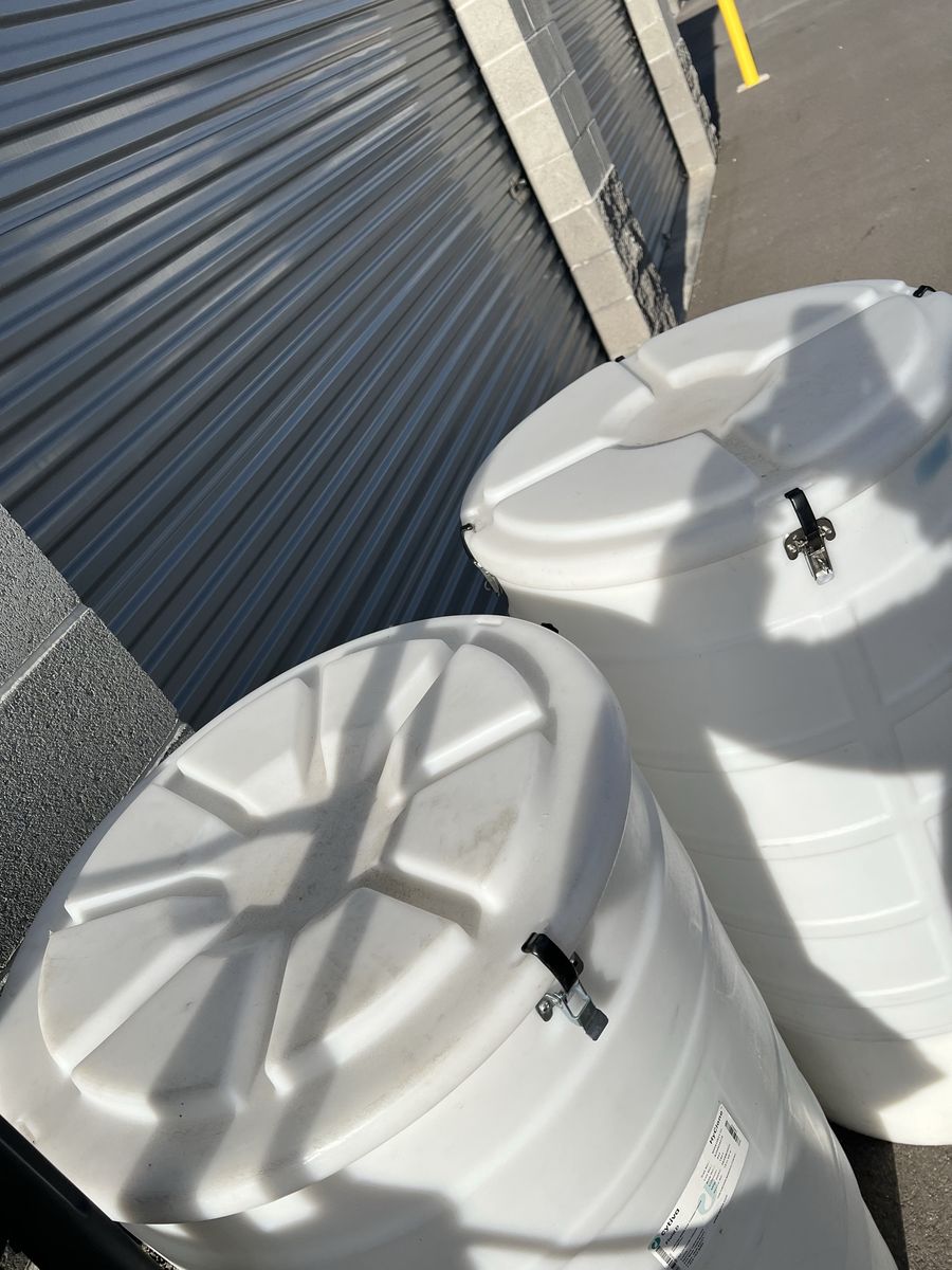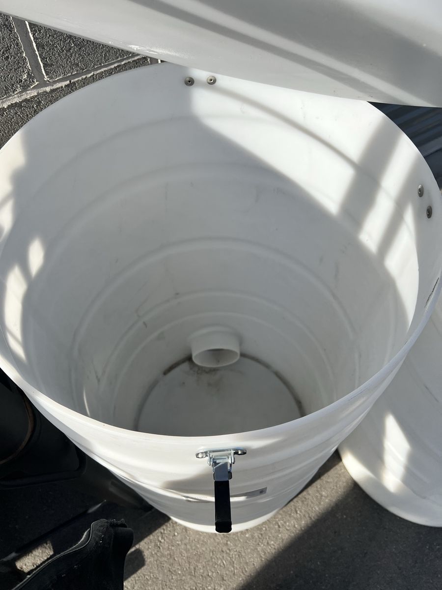 Venmo2- 60 Gallon Poly Drum/Tank. 22" Dia x 42.5" H. With lid. 4" Side Btm outlet threaded. These have multiple uses. Dimensions: Diameter........ 22" Height... 42.5" Material........ POLY (Plastic) Gallons......... 60 gal. $200 each OBO.