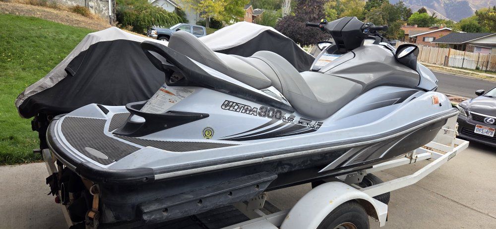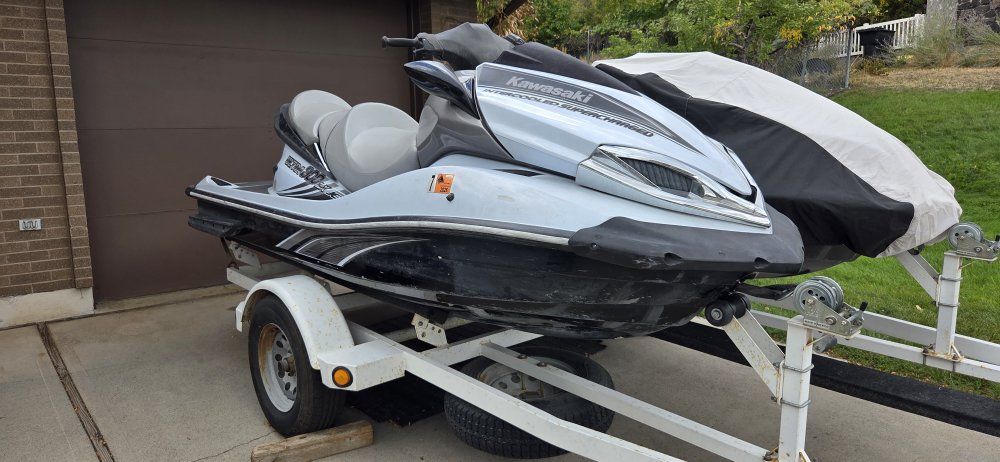 2012 Kawasaki Ultra 300lx Super Charged Jet Ski & 2 place trailer. 1498 cc liguid-cooled 300hp motor. *Mechanic special* Very fast machine but last year at Lake Powell each day we used it it got harder and harder to start. Now it won't start at all and we get 0 compression in all 4 cylindars. Karl Malone says the cylinders are scored and it needs to be rebuilt. They want $4000 to rebuild the motor. Rush Powersports will rebuild it for $2950 if you pull the motor yourself. Excellent opportunity to save thousands if you rebuild it yourself or even if you just pull the motor for Rush Powersports. Gauges work, good cover and the seat has been recovered. 291 hours. Includes a 2 place trailer that is in great shape, good tires, pulls well, lockable gas can storage area and a storage box on the front. JD Power blue book for the machine and trailer is $8500. Asking $4500 obo. Text is best 8013611597