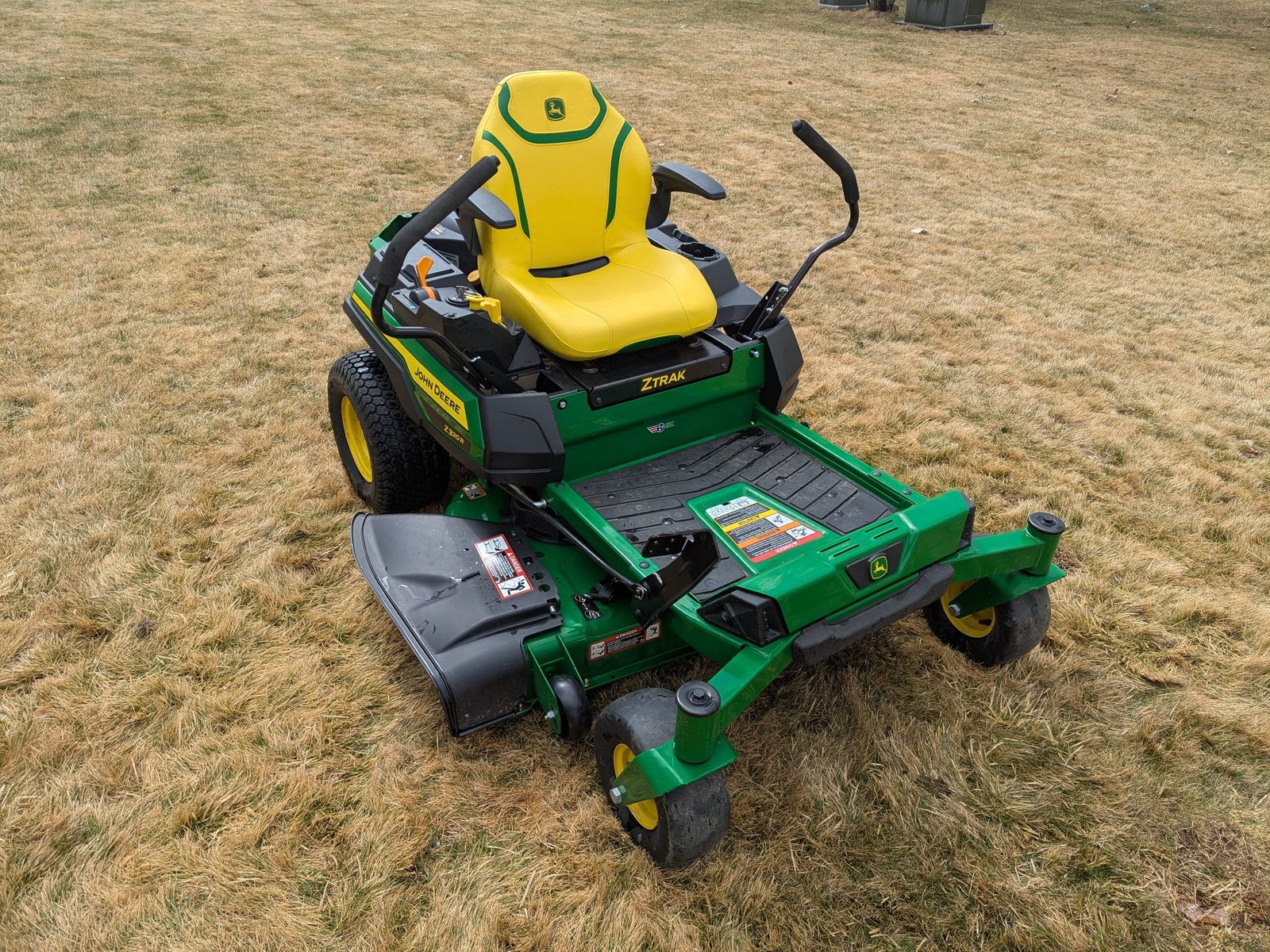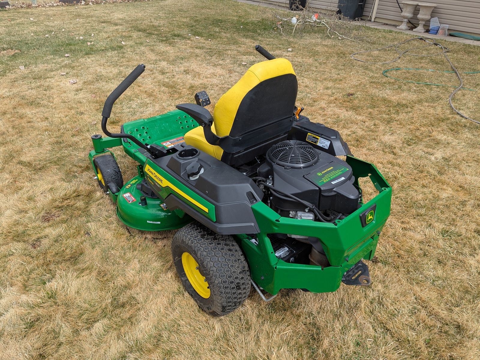 Zelle2024 John Deere Z320R mower w/ 75 hrs since new. Upgraded seat w/ arm rests, 21HP Kawasaki engine (far better than the kohlers), mulching upgrade w/ on-the-fly change.