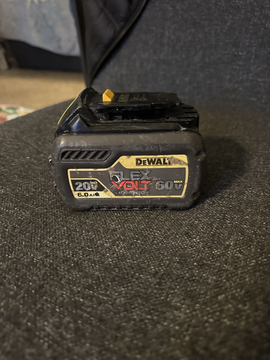 Comes with 1 battery 60V 6.0 ah flex volt and charger. (Battery has been used with our other power tools but is working great!