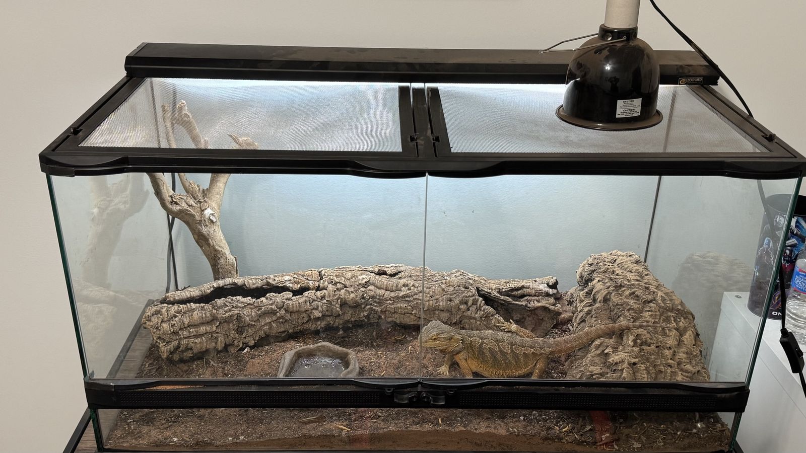 Including the terrarium with everything in it, lamps, and whatever food we still have.
