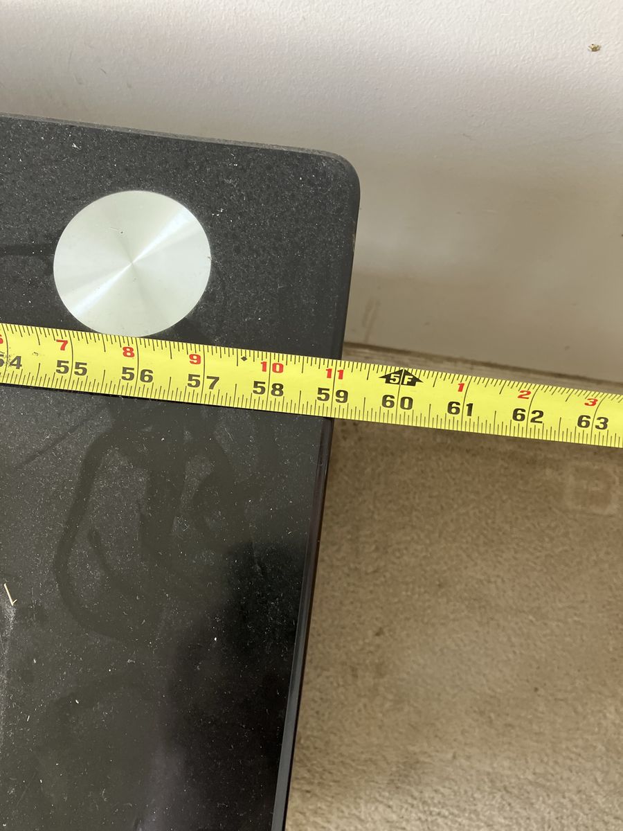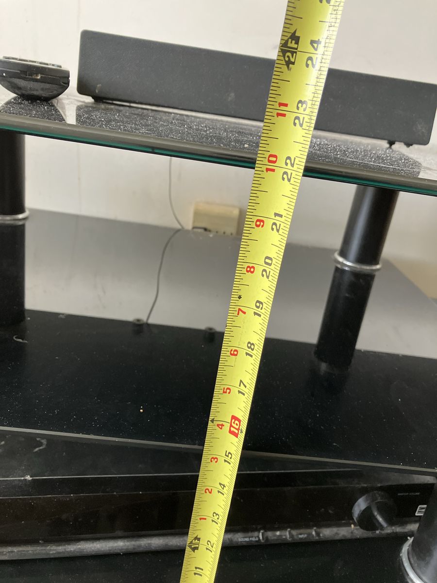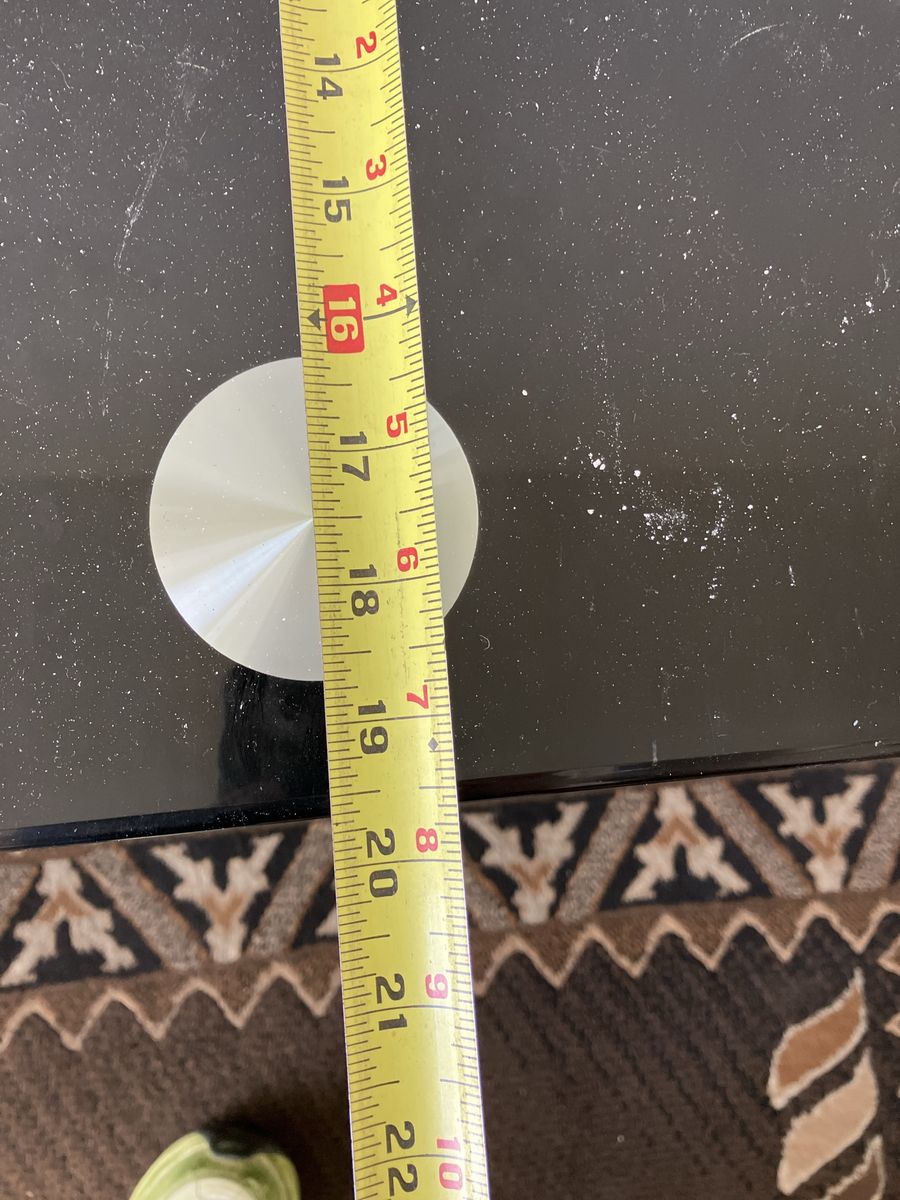 Black, glass. Drywall dust from tenants removing tv. It’s glass, easy to clean.