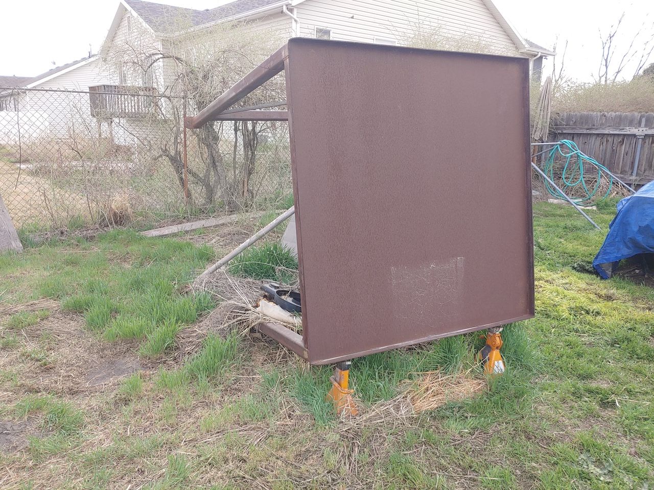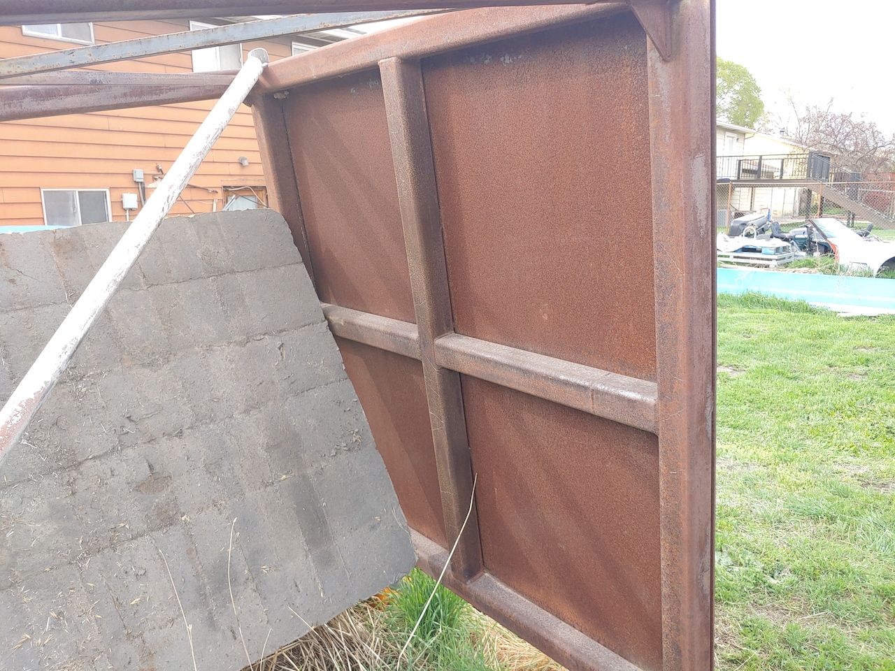 Heavy Duty Industrial Steel Table 85.5” tall. 62” wide, 60” deep with a 2” lip on three sides.