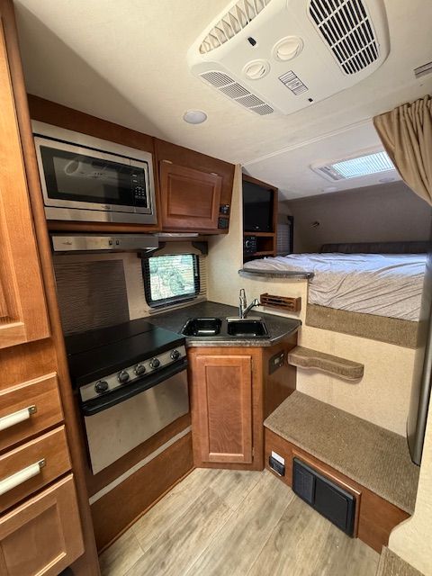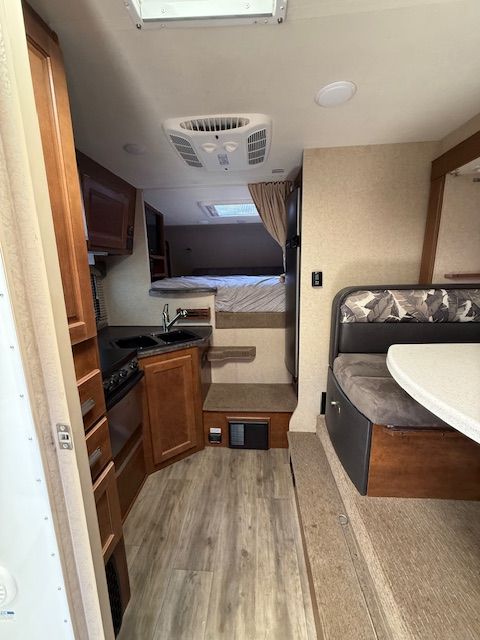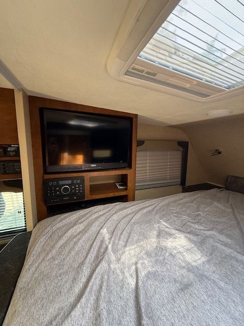 Comfort & Convenience- Ducted heat and A/C- Electric jacks with remote- Solar panel onboard- LED lighting throughout- Fantastic Fan- Onboard battery system- AM/FM/DVD stereo with indoor/outdoor speakers- Rear awning- Exterior storage and accessory rack