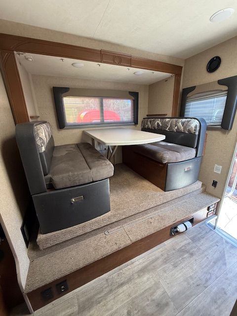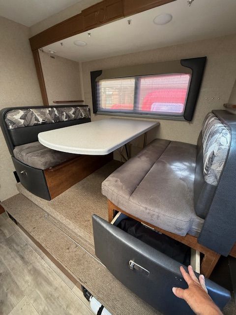 Features- Sleeping Capacity: Up to 4- Queen bed with upgraded memory foam mattress- Dinette converts to additional bed- Wet Bath - toilet, sink, and shower