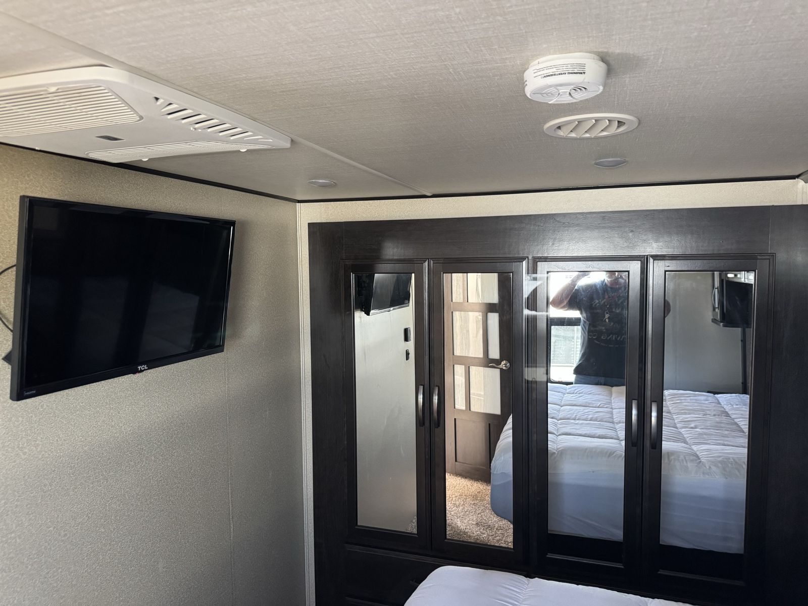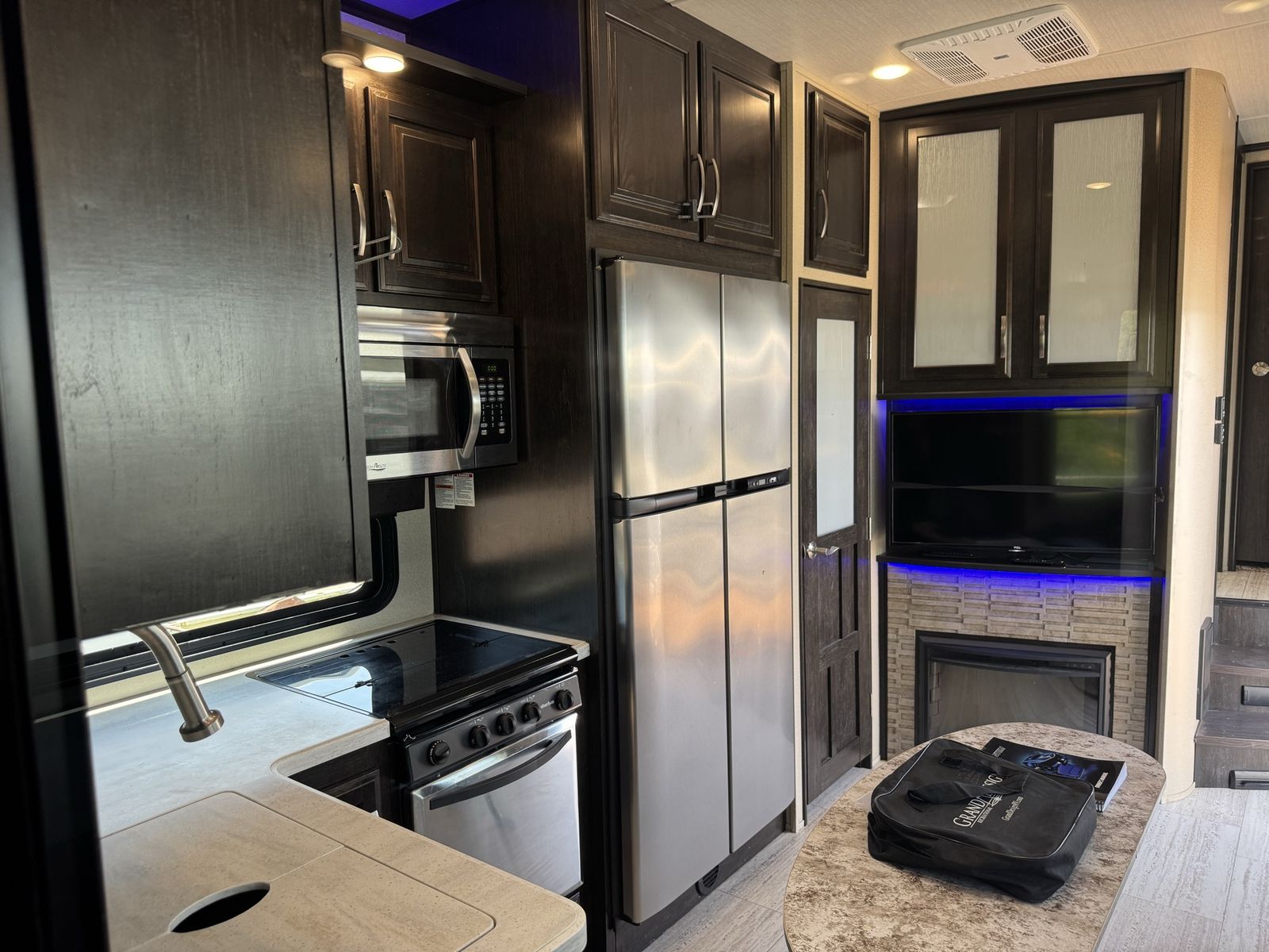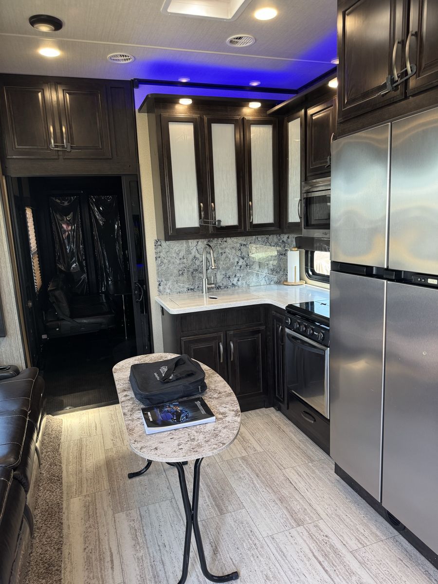 A gently used 2018 37’ Grand Design toy hauler . Dry weight 12,500 #’s. 160 gallon fresh water storage. 70 gallon grey water storage. sleeps 7-10 if wanted. Full size4 door refrigerator, freezer. Heated and massaged reclining couch. Everything works as it should. Control trailer wirelessly through your phone app. Full size shower. Washer and Drier plumbed and ready to go. Totally wired for solar on the roof but no panels installed. Regular gasoline fuel storage and pump system onboard. Generator has little use and in a 5500 Watt Onan gas powered system.House vacuum plumbed throughout! Everything included to literally go camping this weekend. The front cap has signs of weather marks. James 208-223-3505. Priced reduced to 39,900.00