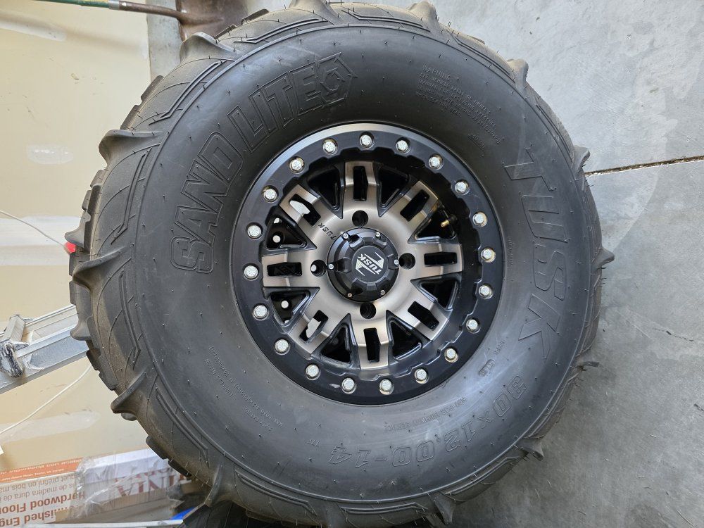GooglePayClean set of 4 Tusk Sand Lite sand tires. These are 30x10-14 size. Wheels are included. Tires still have the nubs on them, barely used for one season came off my Can-am X3