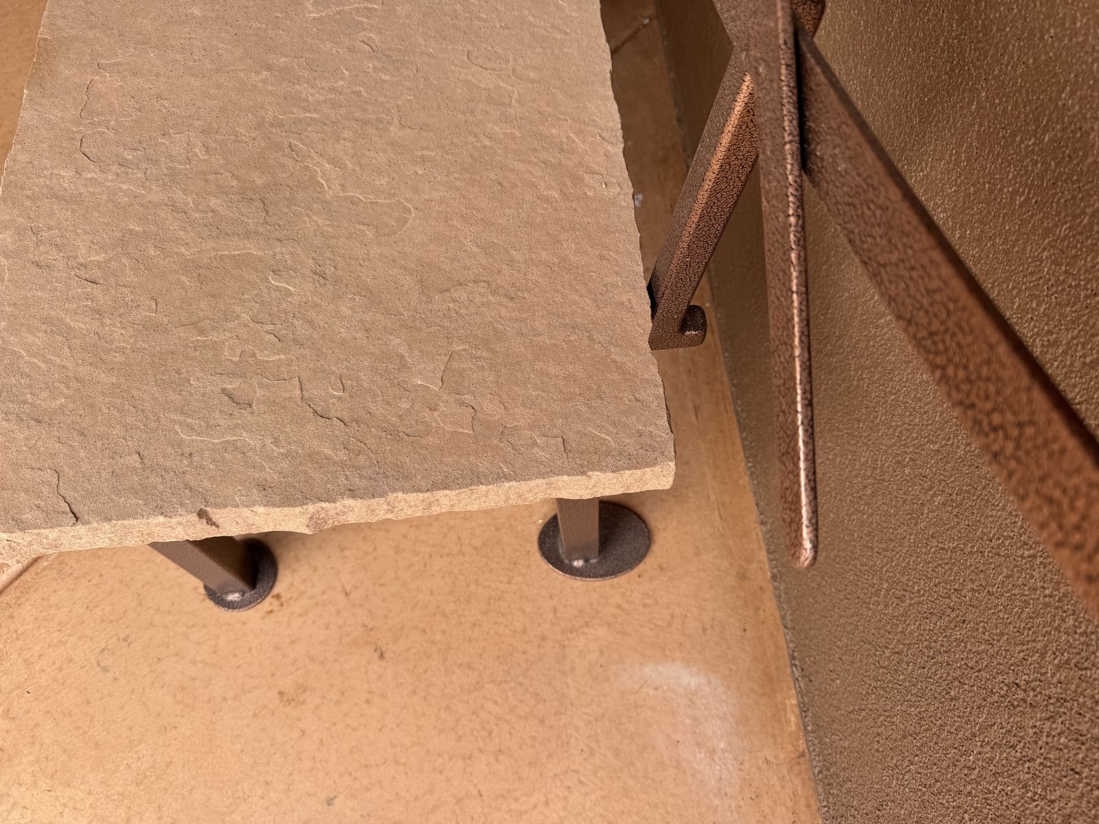 ZelleIron sculpted bench with sandstone seat. Powder coated.