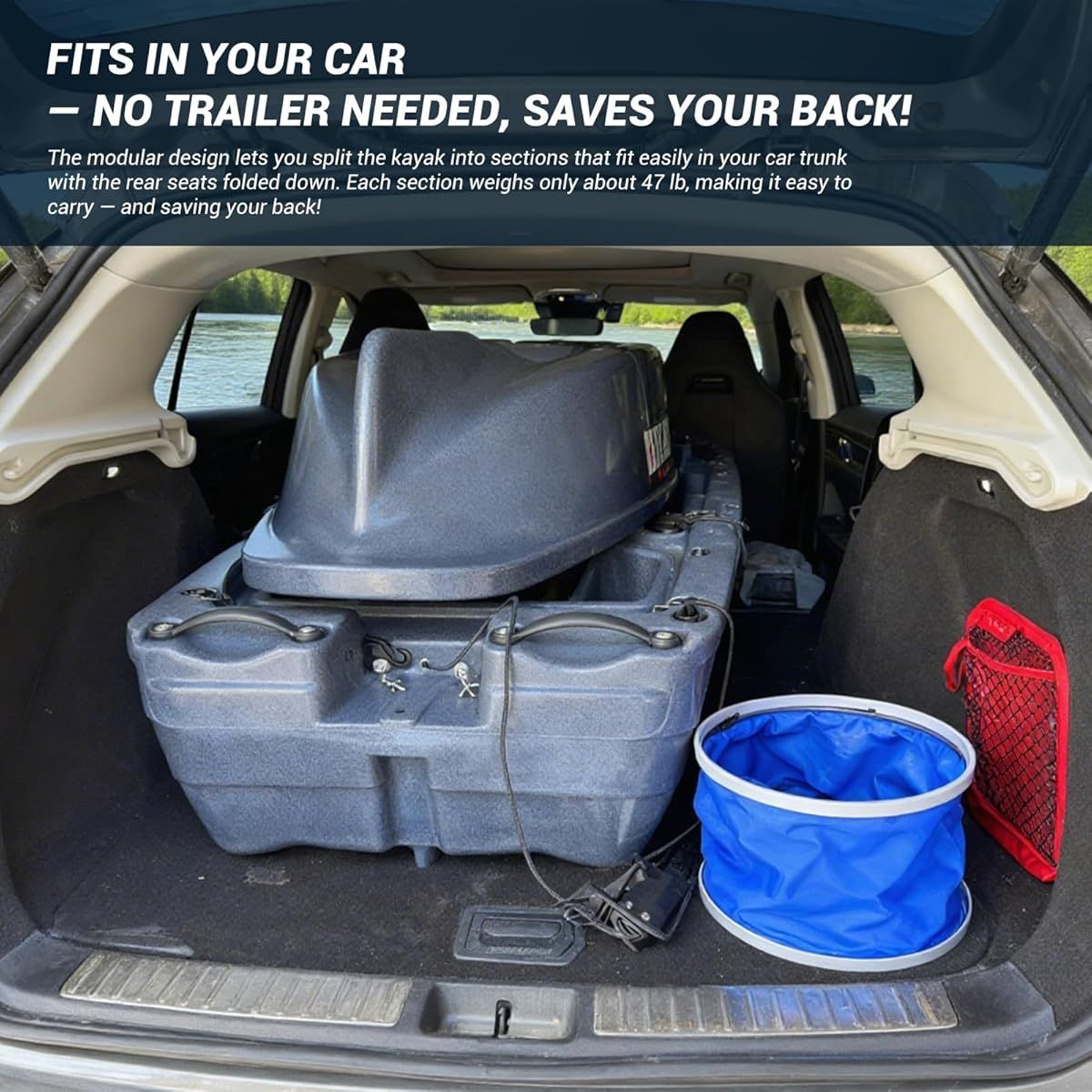 GooglePayGet out on the water with this versatile modular pedal drive fishing kayak—perfect for anglers who want performance without the hassle of transporting a full-size kayak. Key Features: 2-piece modular design for easy transport and storage Fits in most SUV trunks—no roof rack needed Efficient pedal drive system with reversible propeller Stable, fishing-ready design Comfortable seat included Paddle and propeller drive included Great for lakes, reservoirs, and calm rivers