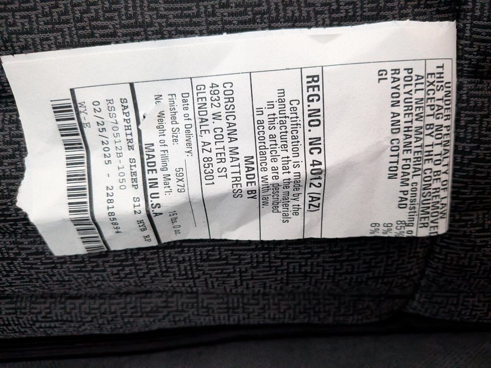 VenmoSapphire Sleep 12” Restore Hybrid medium-plush mattress with cooling cover, 2.5” gel air foam, 2.5” air channel foam, and 6” edge-to-edge coils. Designed for back, side, and stomach sleepers.