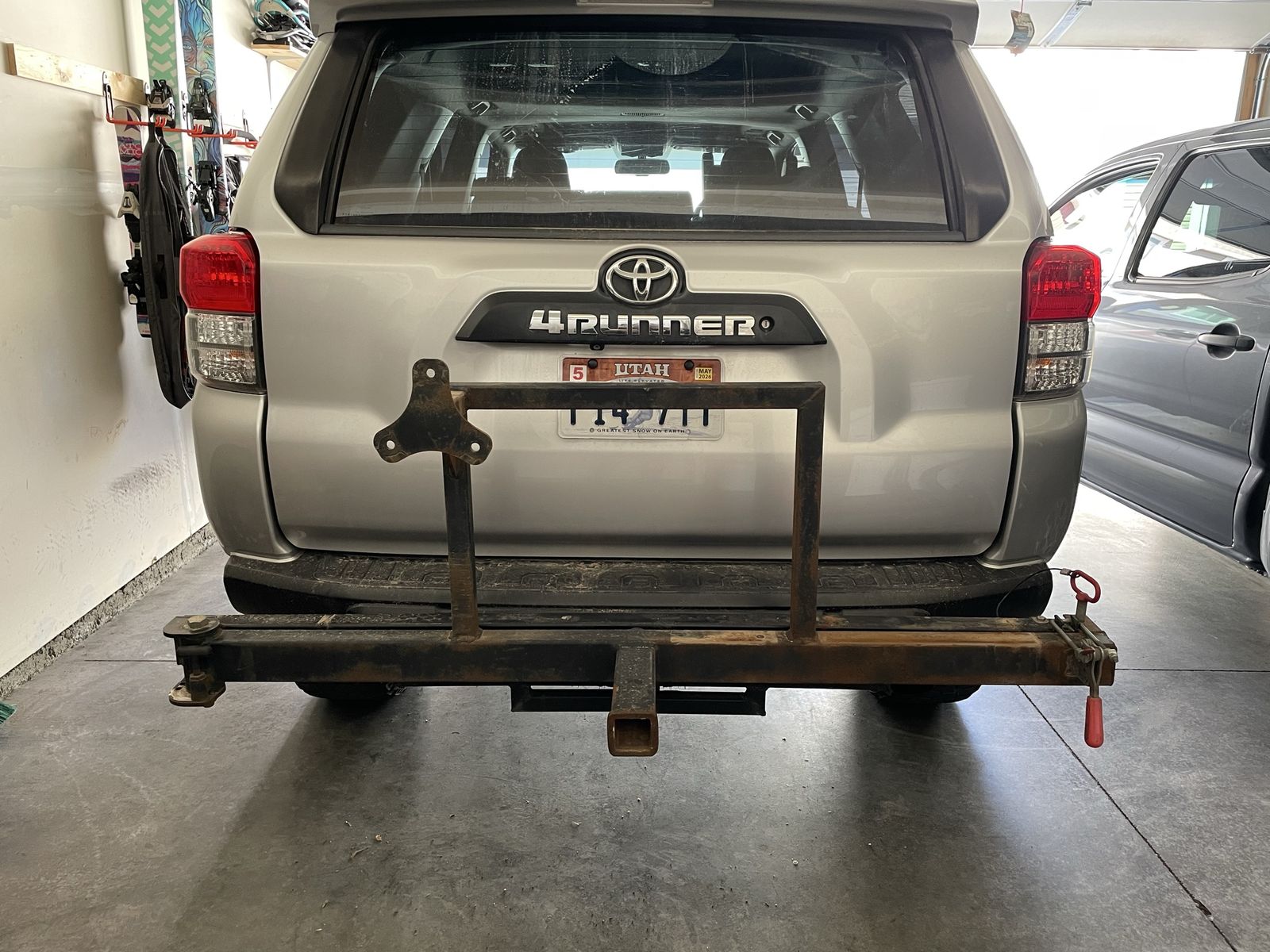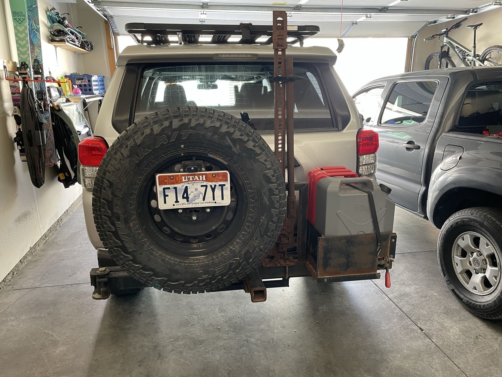VenmoCustom design that I built myself. Only fits 5th gen 4Runner’s because it sits very tight to the rear bumper. It handles my 32” spare very good. It has anti-wobble mechanism, locking pin and latch when opened and closed, secondary hitch for a bike rack. Also comes with jerry can holder and all the hardware. Can also include the 32” spare I don’t need anymore for extra cost. See the last picture for my setup I used. Asking $350
