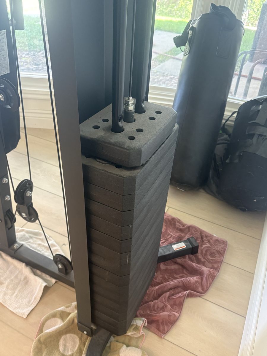 Great condition 140lb weight machine minimal wear, lat attach, bicep curls, leg extensions, etc. possible delivery for a fee.