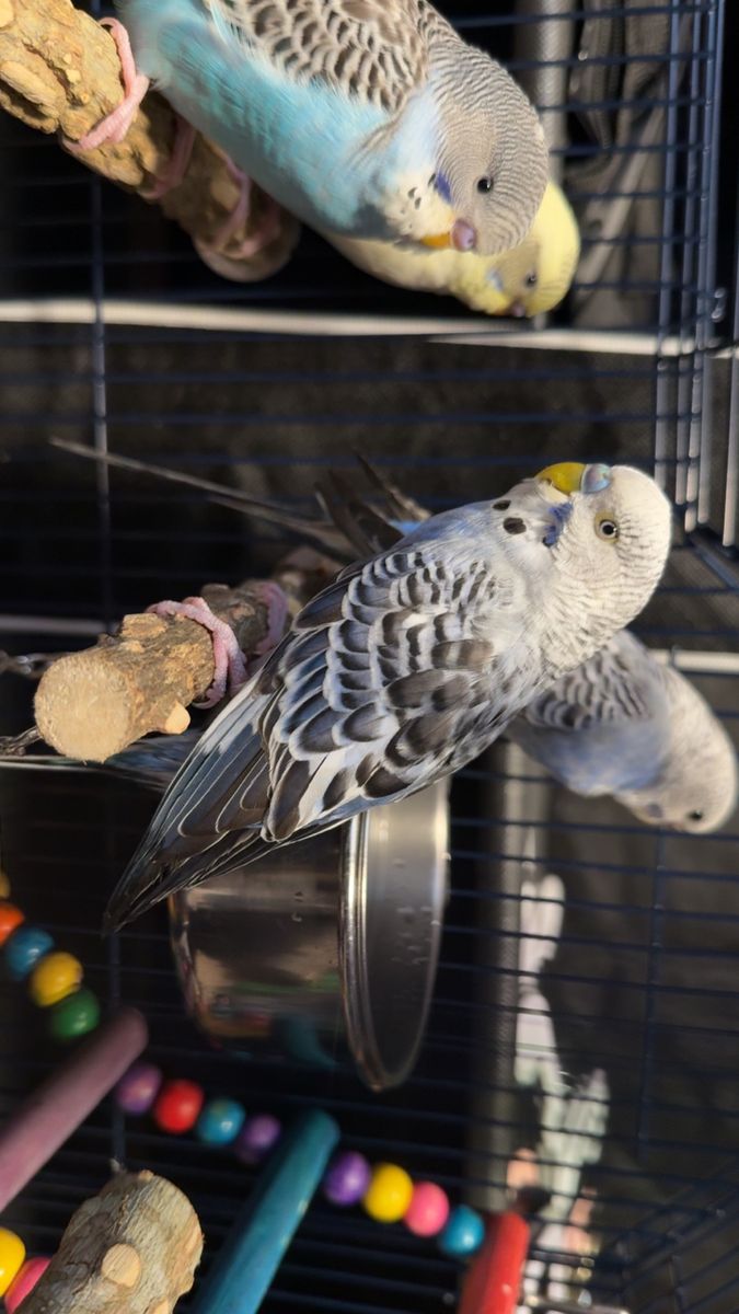 ApplePayThree parakeets with cage and ten lb bag of food