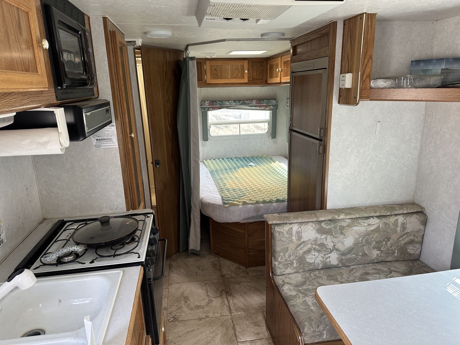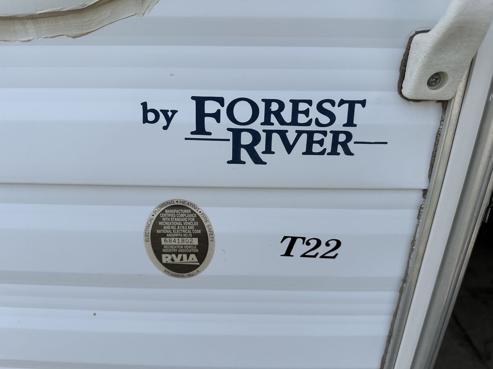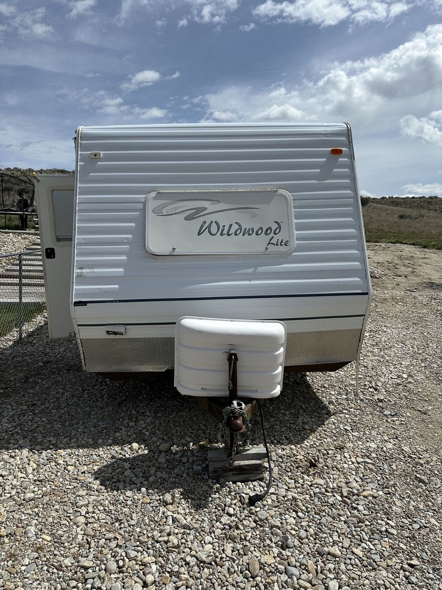 ApplePay2000 T22 Forest River by Wildwood for sale. The camper has been used mainly as a hunting and occasional local camping trip. It does need a little TLC. See the picture for the water heater control. A rag caught fire during transport and burned some of the wiring. The tank is in good shape and is 5 gallons. Just the circuit board needs replaced. It does have a small leak near the front that also needs fixed. Everything else including the stove, fridge and AC work great.