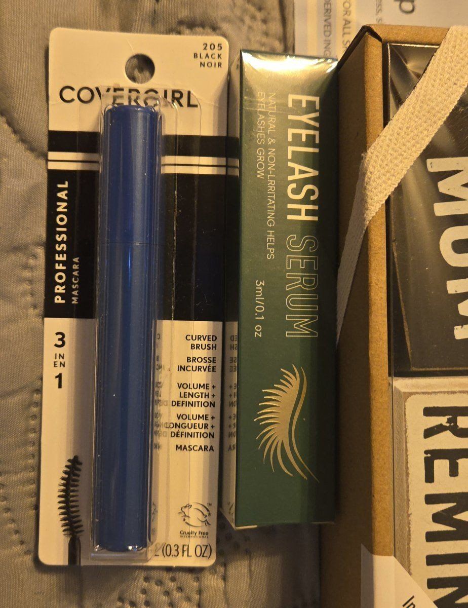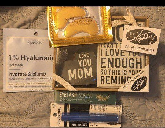 VenmoPicture holder that says "Love U Mom" and cute plaque says "I can't say I love you enough so here's a reminder", Covers Girl Black Mascara, Lash Serum, Gold Eye Masks, Face Mask and your choice of Earrings and Bracelet Asking $30 ALL BRAND NEW