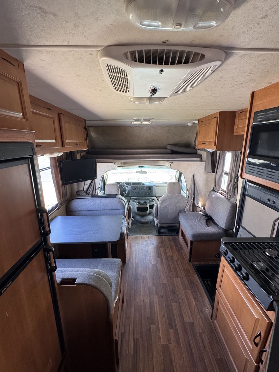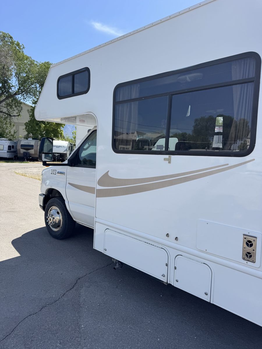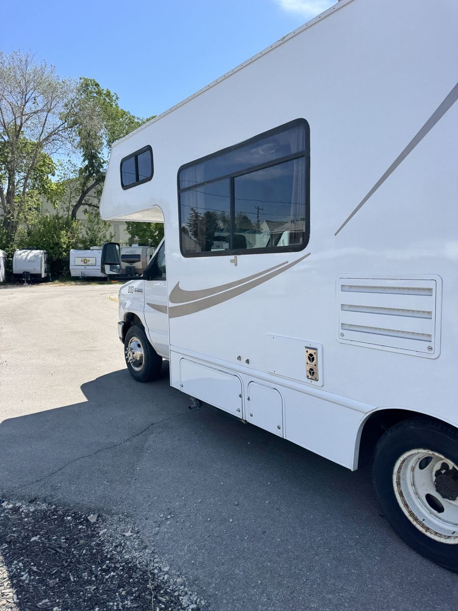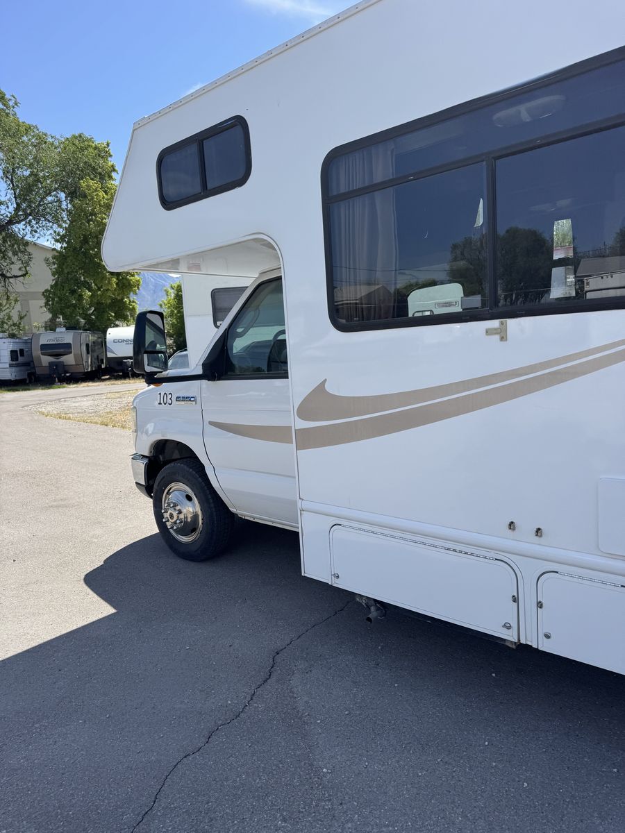 238k miles. 95% Highway mileage. Runs nice and smooth. Has a super reliable 5.4 V8 Ford triton engine and 5 speed automatic transmission. All amenities and generator ( Onan 4000 QG) work well