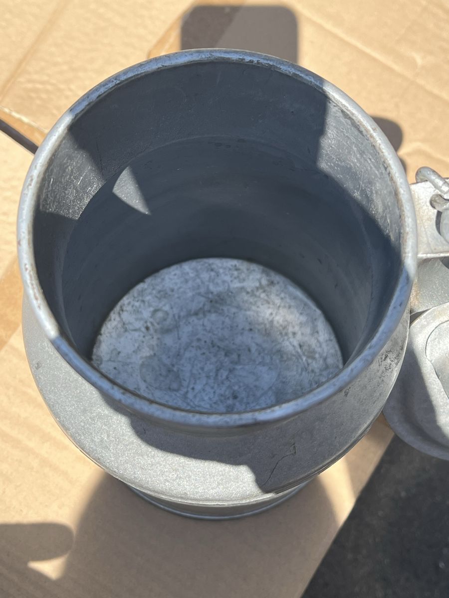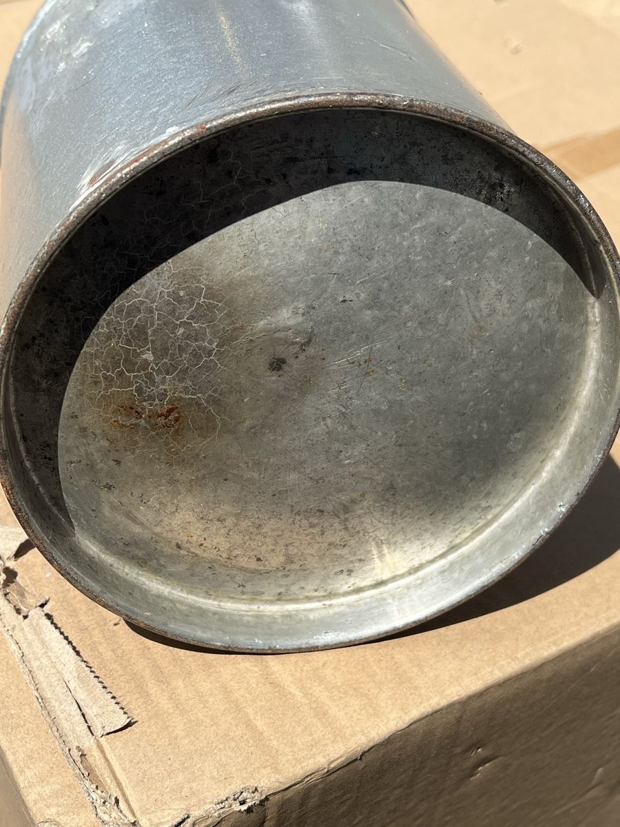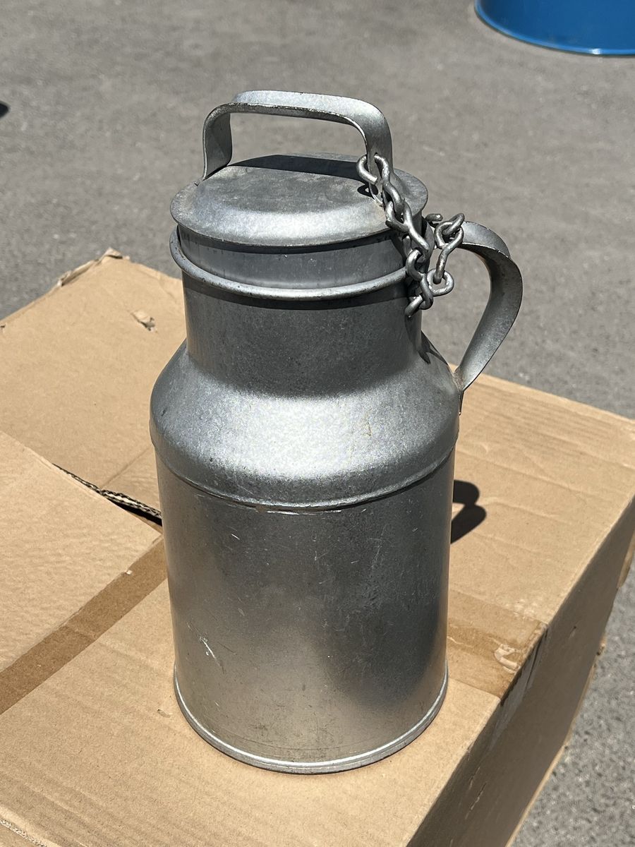 VenmoVintage steel milk can, also known as a milk churn, featuring a hinged lid attached by a chain. 13” H 6.5” W $80 OBO.