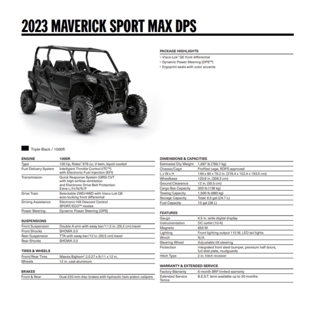 2023 Can-Am Maverick Sport Max DPS 1000, in excellent condition with only 800 miles. This machine has been very well maintained, adult-owned, and lightly used. Always cared for and it shows.