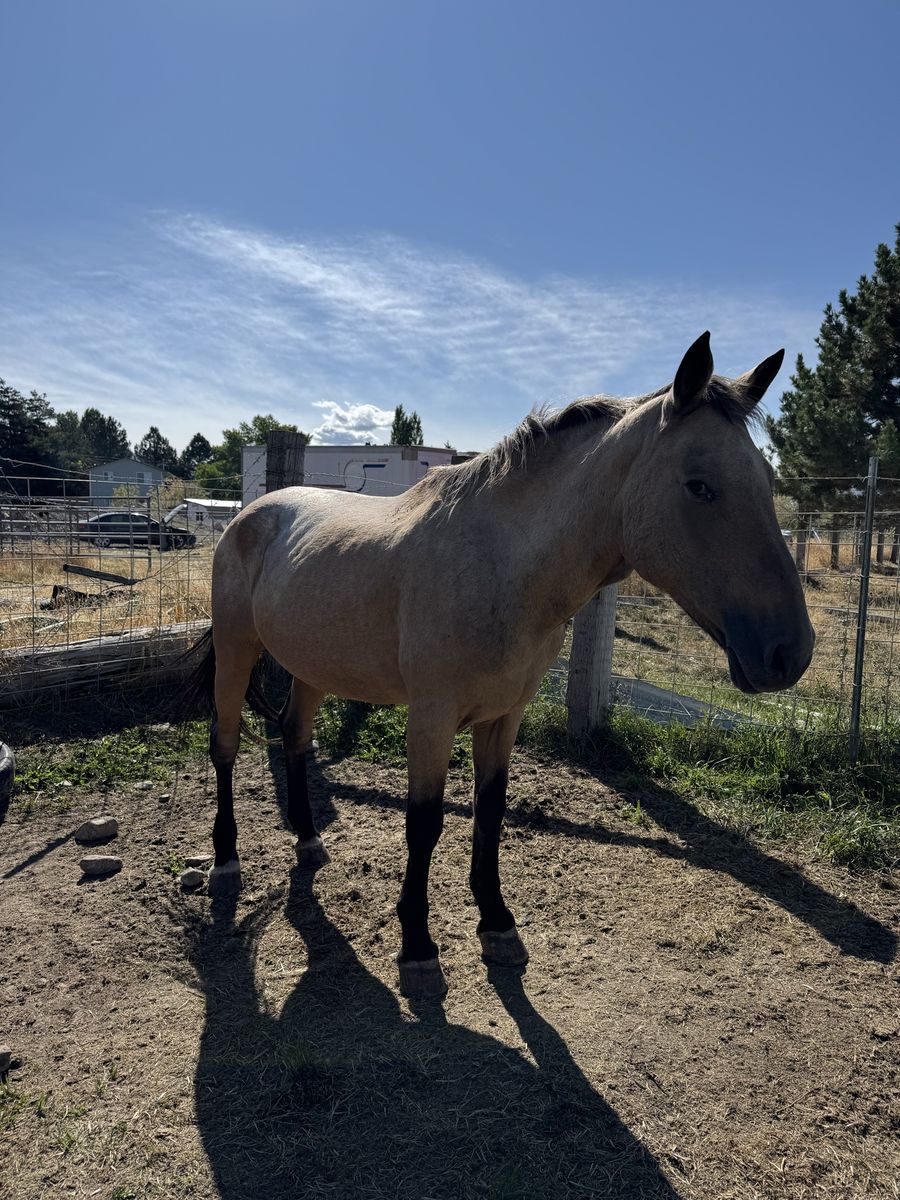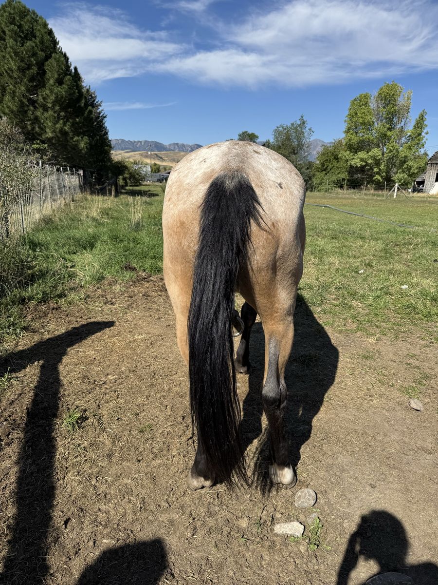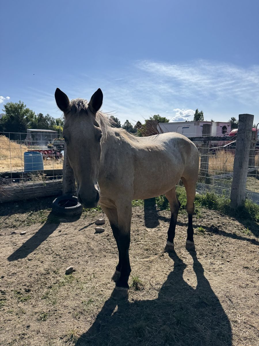 Grade 13 year old mare. She was used as a dude string horse most of her life. Easy to catch shoe and load and will stand tied as long as you need. Looking to sell her because we’re down sizing our herd. Would make an awesome kids horse for someone.