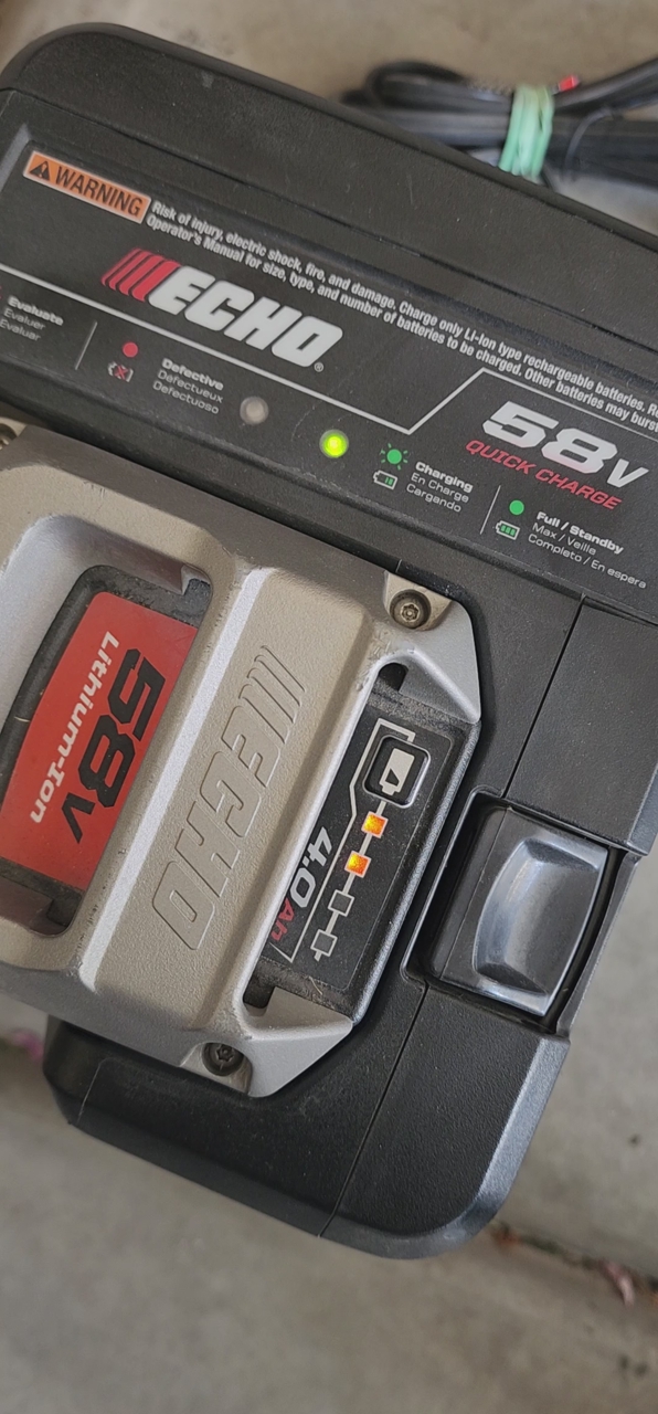 VenmoPre-owned Echo 58-volt quick charger with a 4-amp lithium-ion 58-volt battery. Works great, charges batterys quickly. Compatible with Echo 58V tools. $100 or best offer.