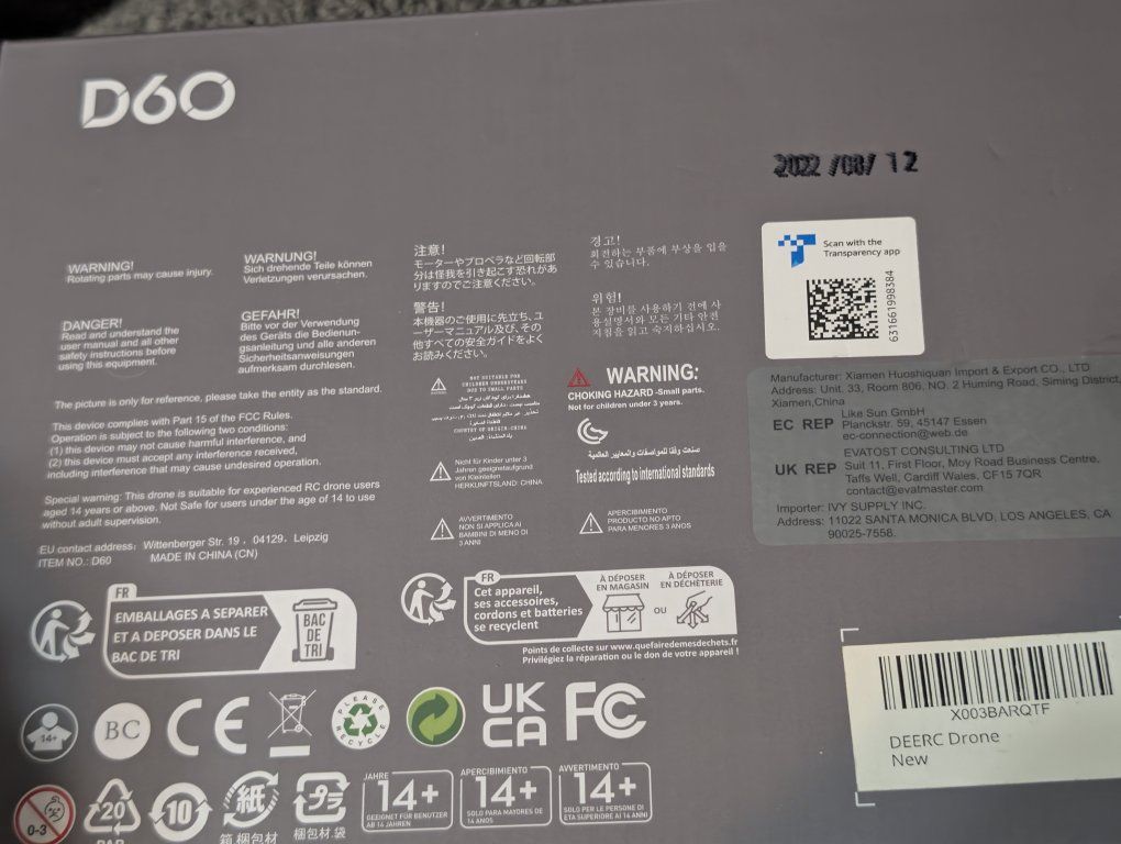 VenmoNEW with seal DEERC D60 Foldable RC Drone. Features a 1080P HD camera for photo and video capture. Equipped with 2.4GHz technology for real-time image transmission to a smartphone. Designed for beginners with a foldable structure. Camera angle is 90° adjustable via the controller. Suitable for users aged 14 and up.
