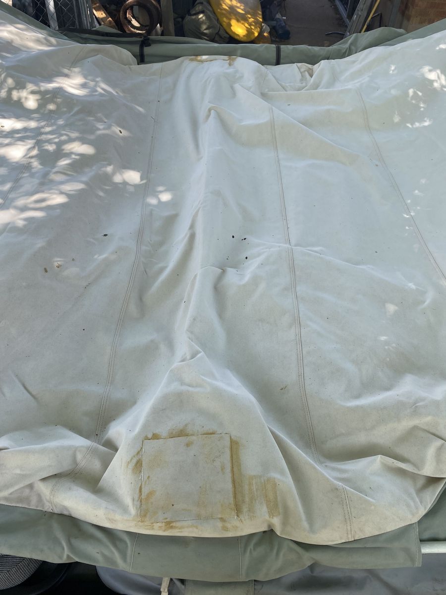 It's always been either stored in a carport with a tarp on it or outside with a tarp. Has two patches from jumping jack on the roof. (kinda ugly, but not noticeable once set up) The holes wore through from vibration from the supports inside the tent. Now I fold a couple pillows there to prevent further wear.