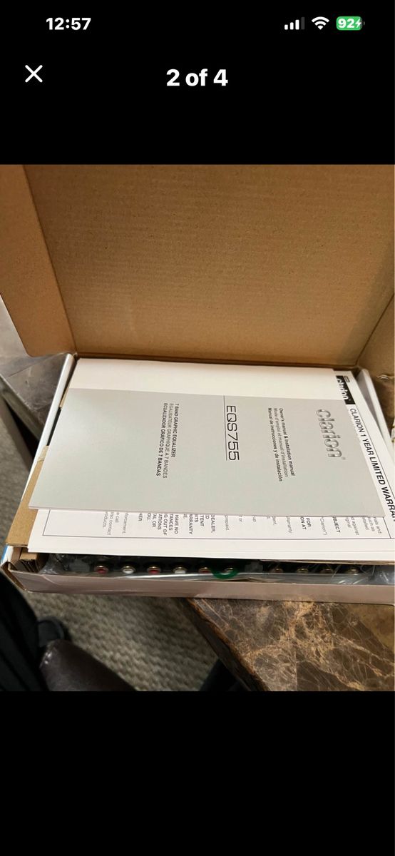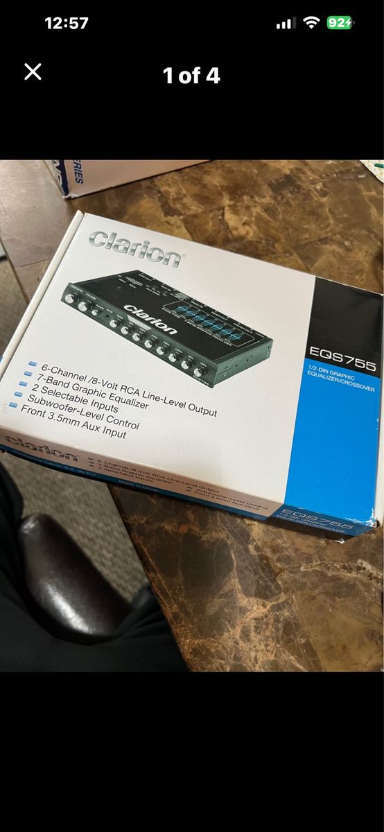 New Clarion EQS755 car audio equalizer. This is a 1/2-DIN 7-band graphic equalizer with a built-in crossover. It has 6-channel 8-volt RCA outputs, 2 selectable inputs, and a front 3.5mm aux input. Unit comes in original box with manual and wiring harness included. Brand new never installed. Check my other listings thanks