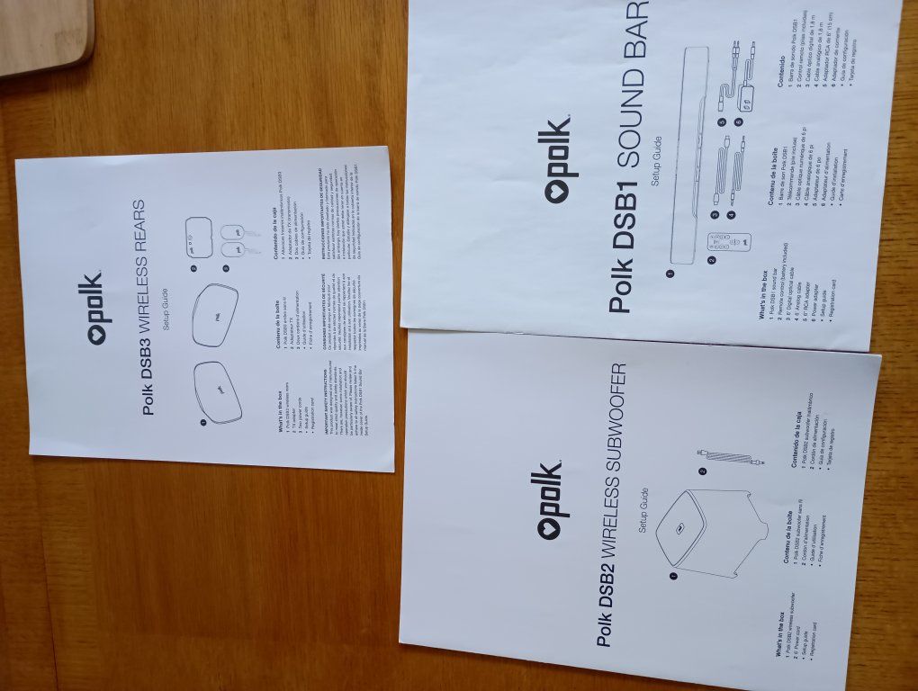 VenmoPOLK SOUNDBAR DSB1, POLK DSB2 WIRELESS SUBWOOFER, POLK, POLK DSB3 WIRELESS REAR SPEAKERS. COMPLETE WITH CABLES AND POWER PACKS, CRUTCHFIELD AND WALMART PRICE 899.00. EBAY PRICE 375.00. I PAID 650.00. BEAUTIFUL BRILLIANT SURROUND SOUND.