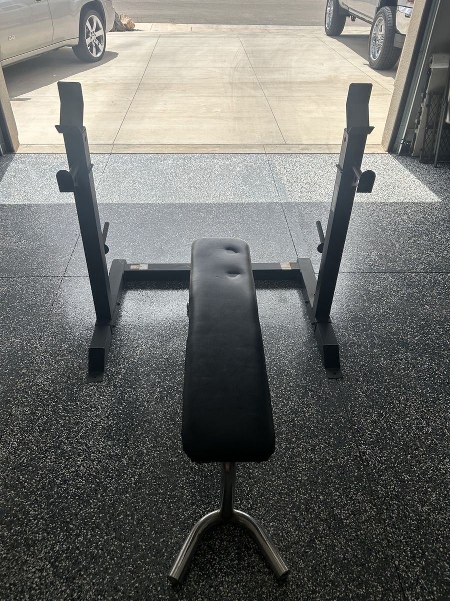 VenmoStarting your own home gym. Sturdy flat bench and half rack for a barbell. Not using anymore, come get it. Text is best. No time for scams