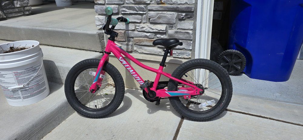 16" Specialized riprock in pink/teal with sparkles. We bought this new in 2018 and was great for my girls to learn on. They have since outgrown it and we no longer need it. Overall good shape with some scuffs here and there. $140 obo