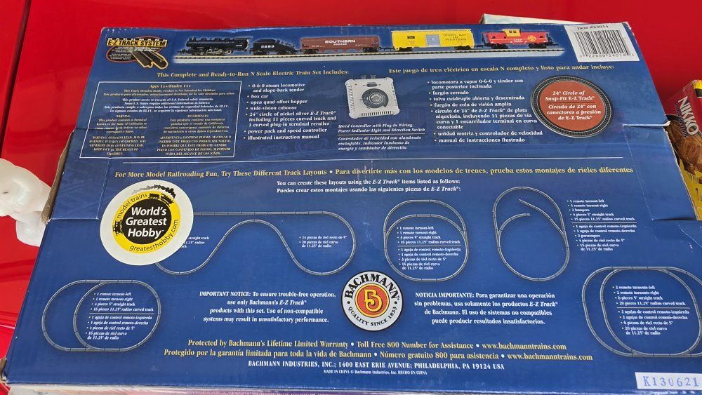 Complete Ready To Run Freight Train Set Powered by a 0-6-0 Steam Era Locomotive with Tender Includes; Box Car, Quad Hopper Car, and Wide-Vision Caboose 24" Circle of Nickel Silver E-Z Track , Power Pack and Speed Controller N Scale 1:160 Designed for Use by Experienced Hobbyist – Not Meant for Beginners Small Highly Detailed Components – For Consumers Ages 14 and Up