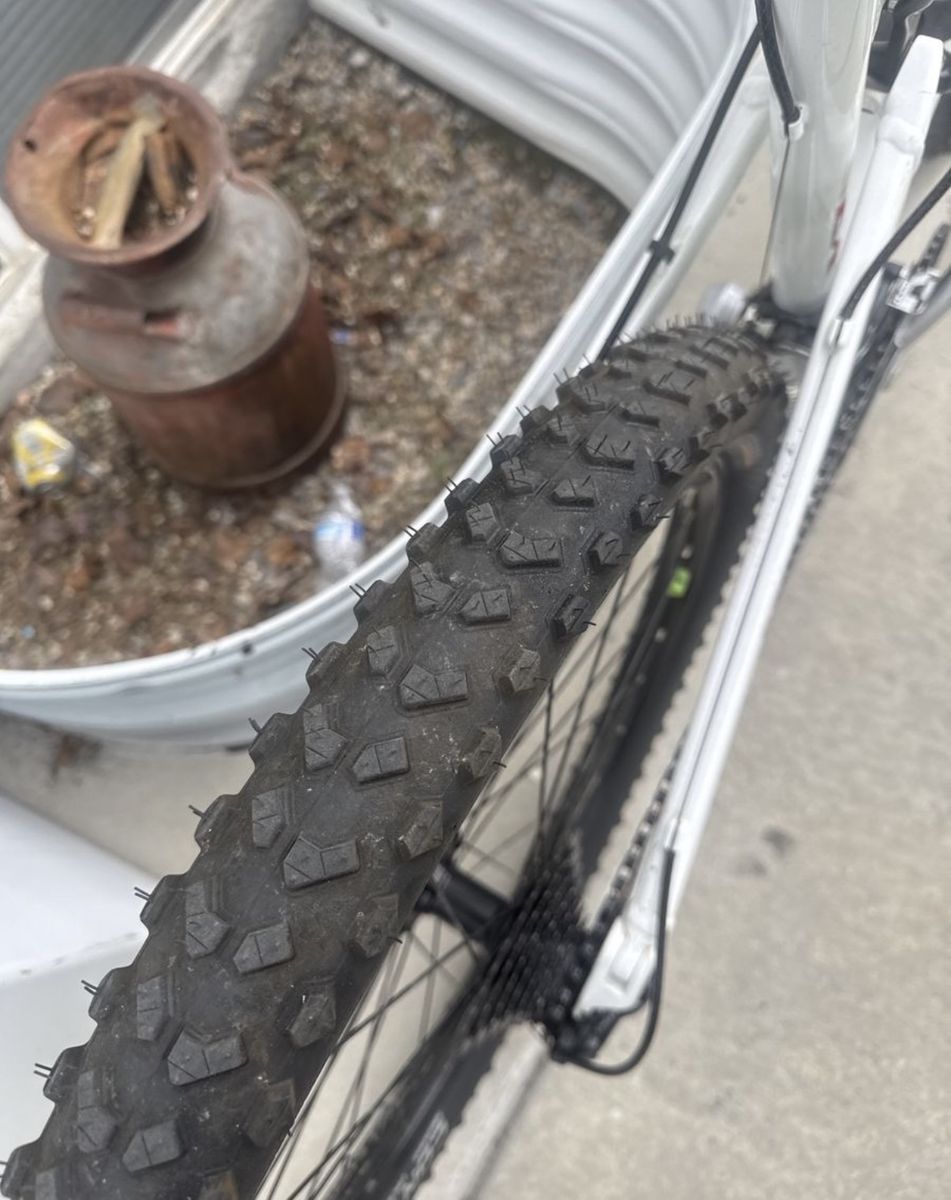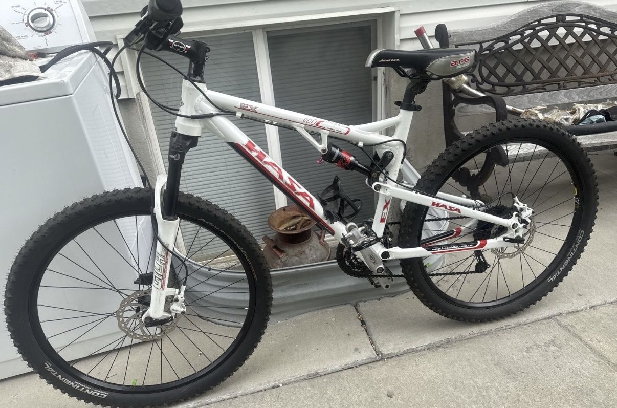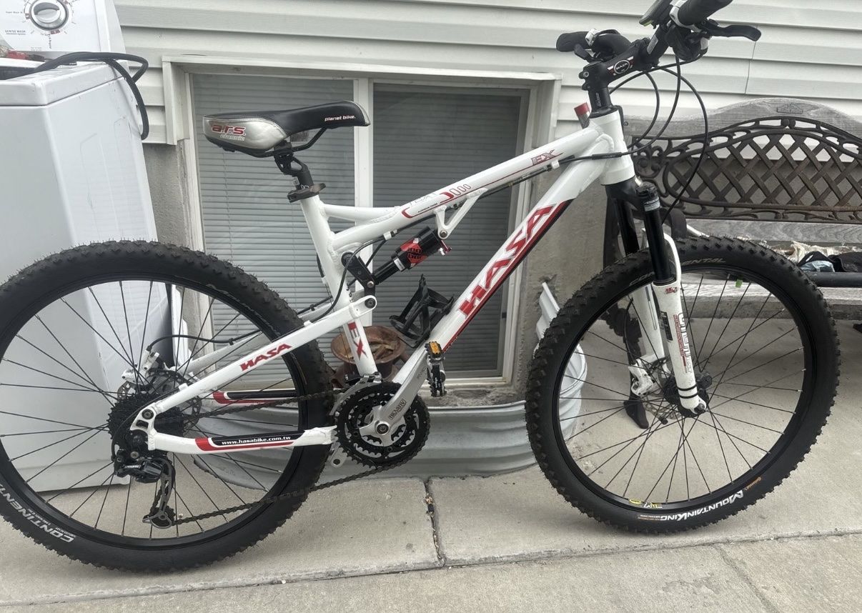 This Bike is still in good condition still in good shape , both tires hold air, tire treads are still good, aluminum frame is still solid and has no cracks , brakes work great and shifters work great Front suspension works great and rear shock works great