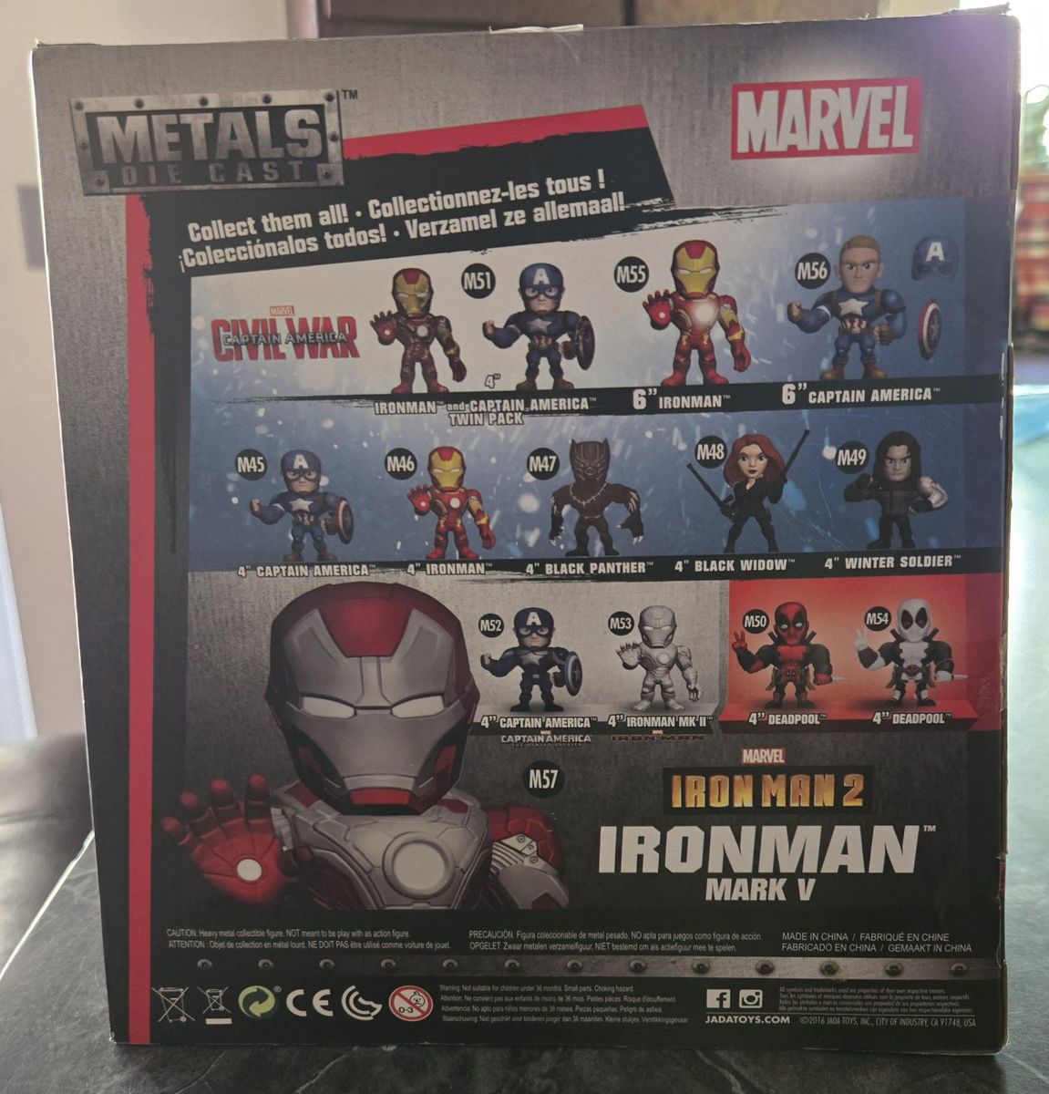 PayPalNew sealed Marvel Iron Man 2 Mark V. Lights up Jada 2016 Loot Crate Metals Die Cast (M57). Picked up in Taylorsville. Thank You.