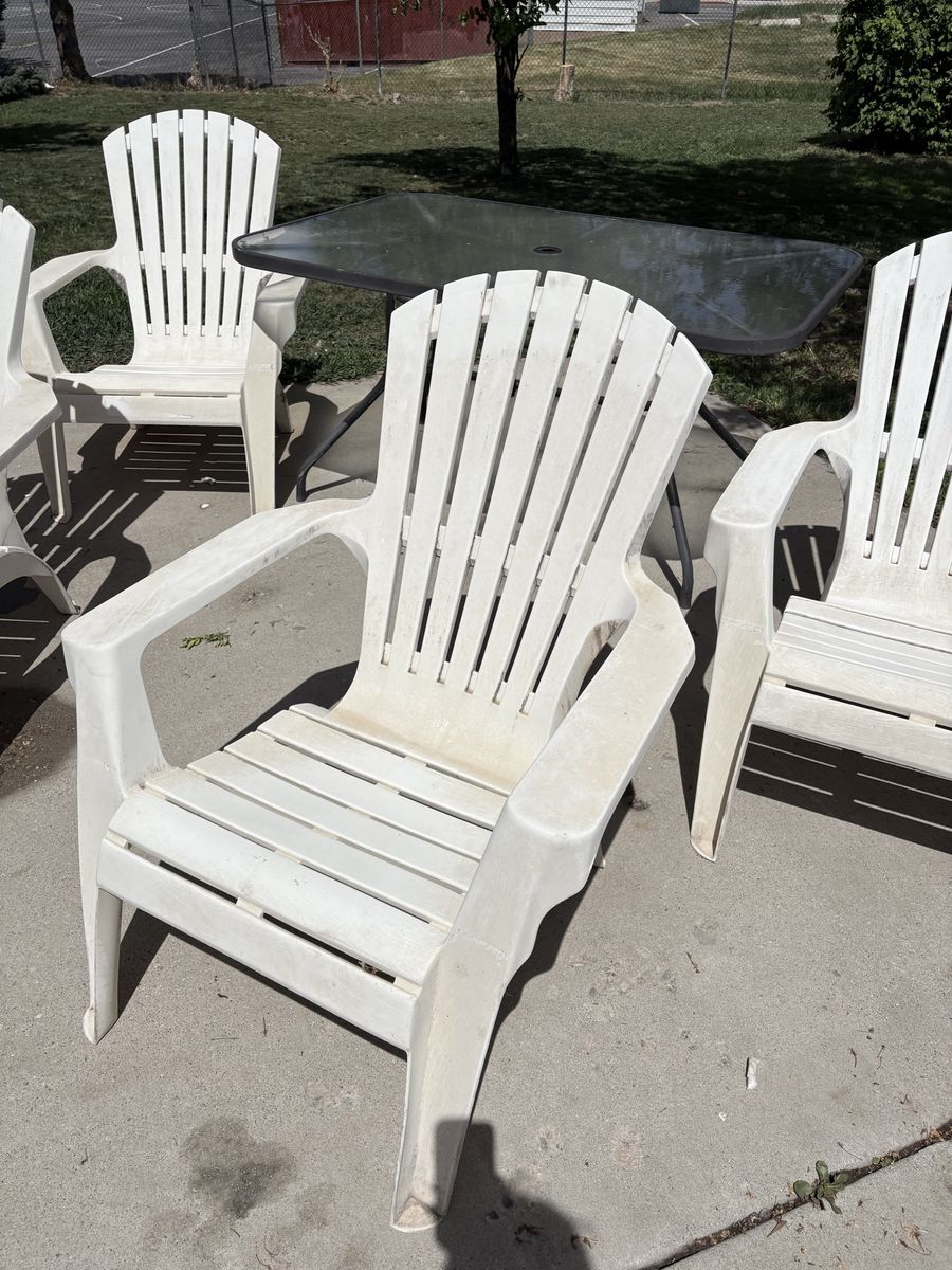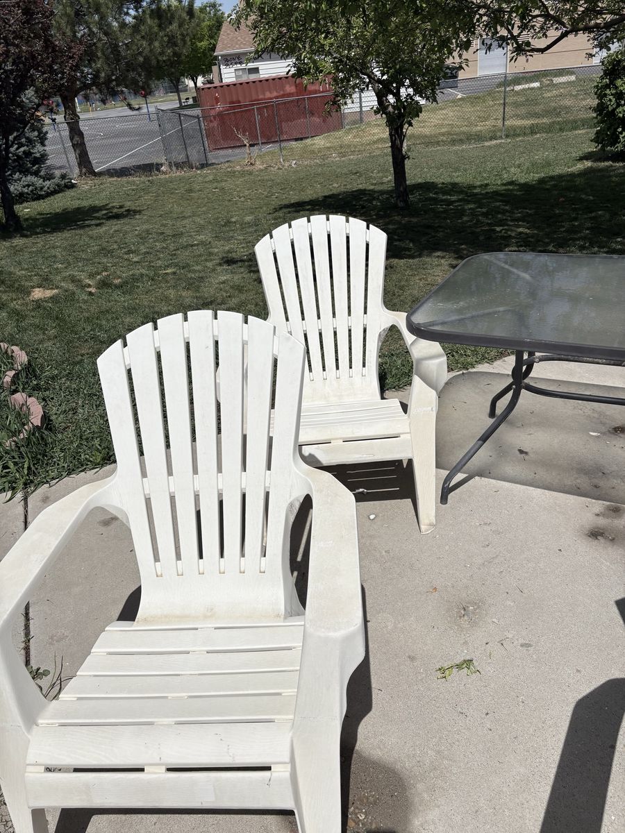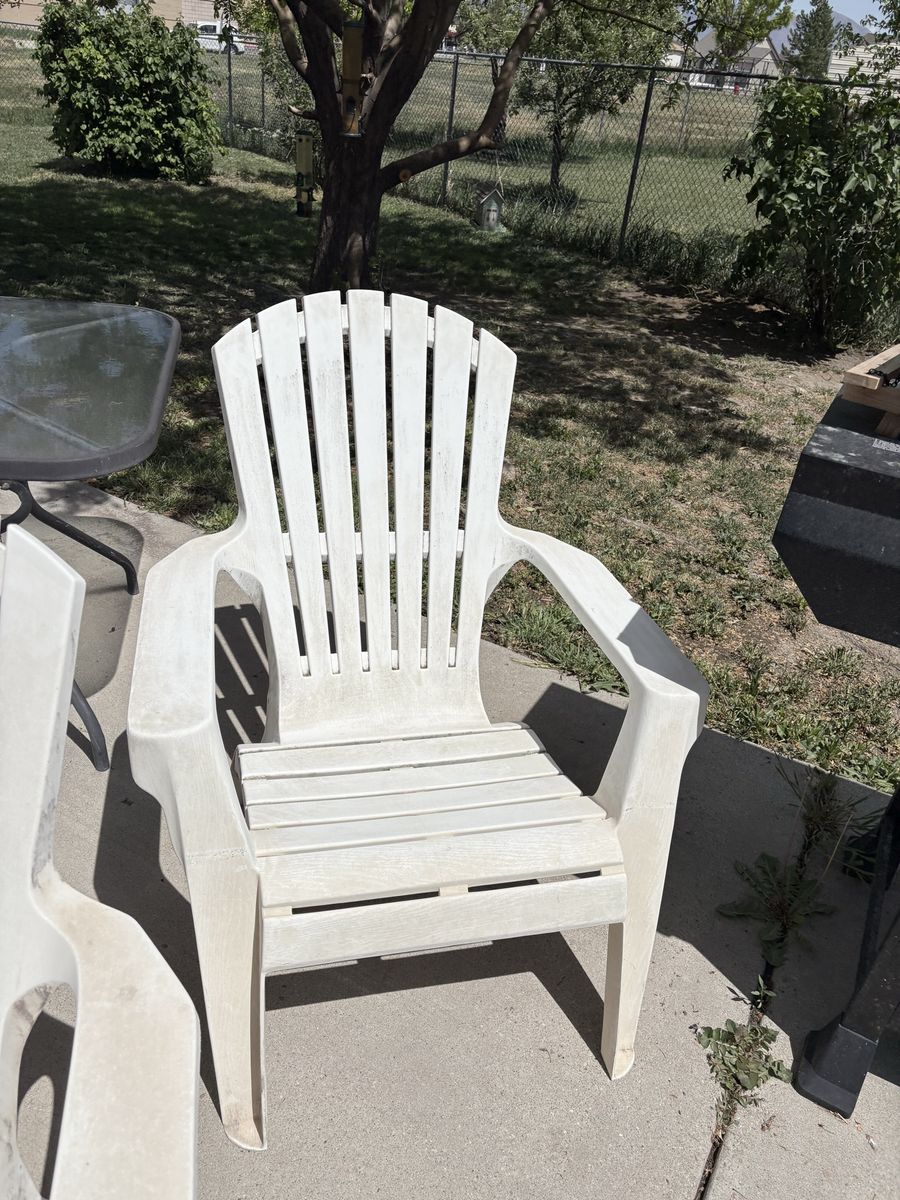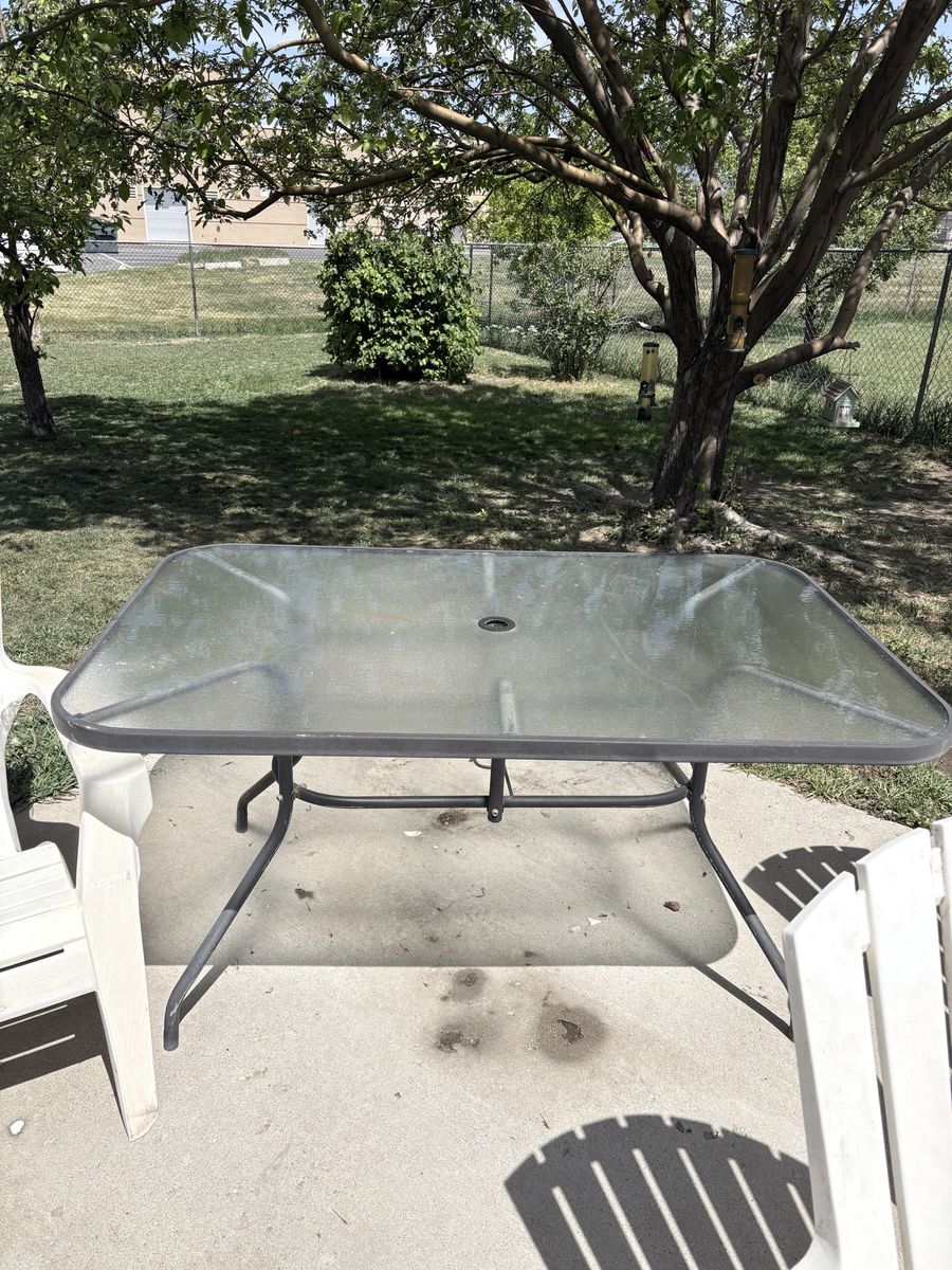 ApplePayPatio set table is 3' x 4' and 8 inches . Four chairs. Fairly used. Still in good condition
