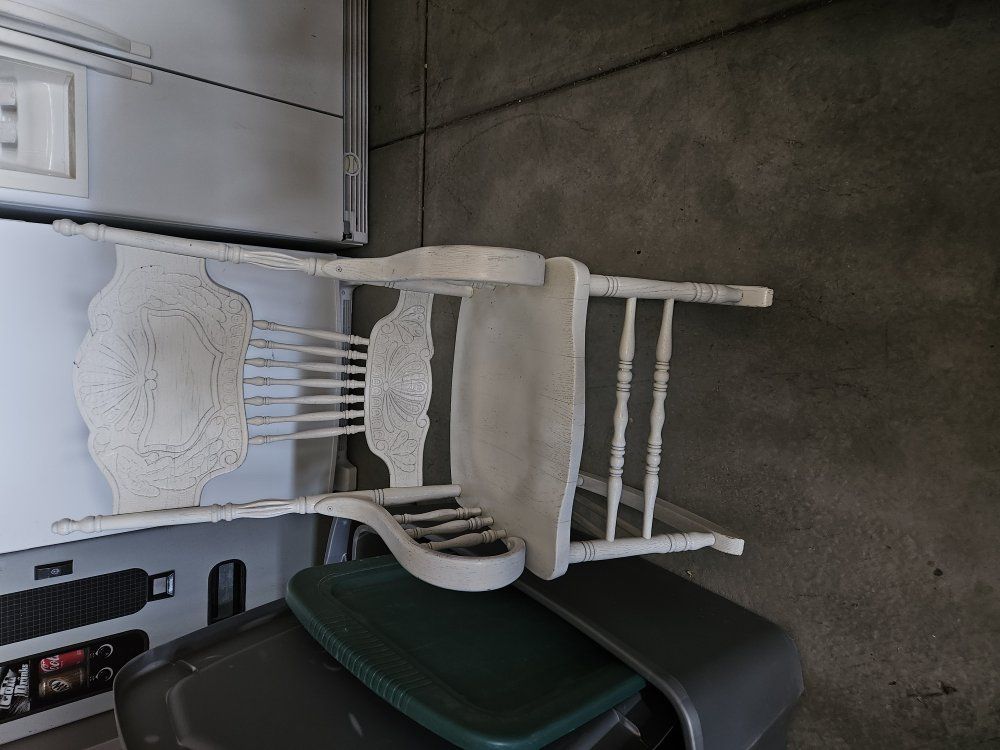 ZelleNicely decorated rocking chair that has been painted white.