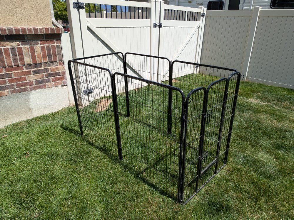 adjustable metal dog fencing, 22 total panels 30" width, 40" height. can all be linked together or sold separately. 2 sets of 8, 1 set of 6