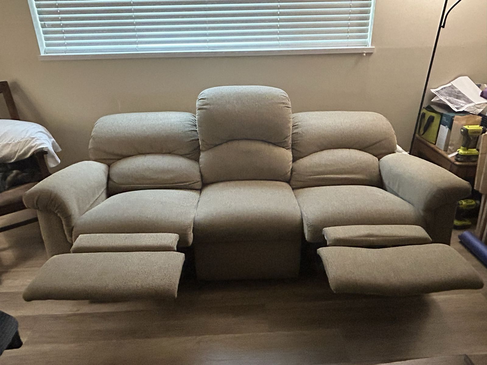 VenmoUsed, tan couch and loveseat set home with no pets, no smoking. Condition is good to fair condition due to Far right side when looking at the couch the foot board is broken still functional just bowed, no holes fully functional.