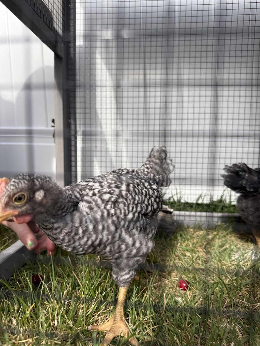 ApplePay5 week Plymouth Rock rooster. We cannot have a rooster in our area, so we unfortunately cannot keep this sweet boy. My kids named him Georgie after Curious George. He's free to a good home.
