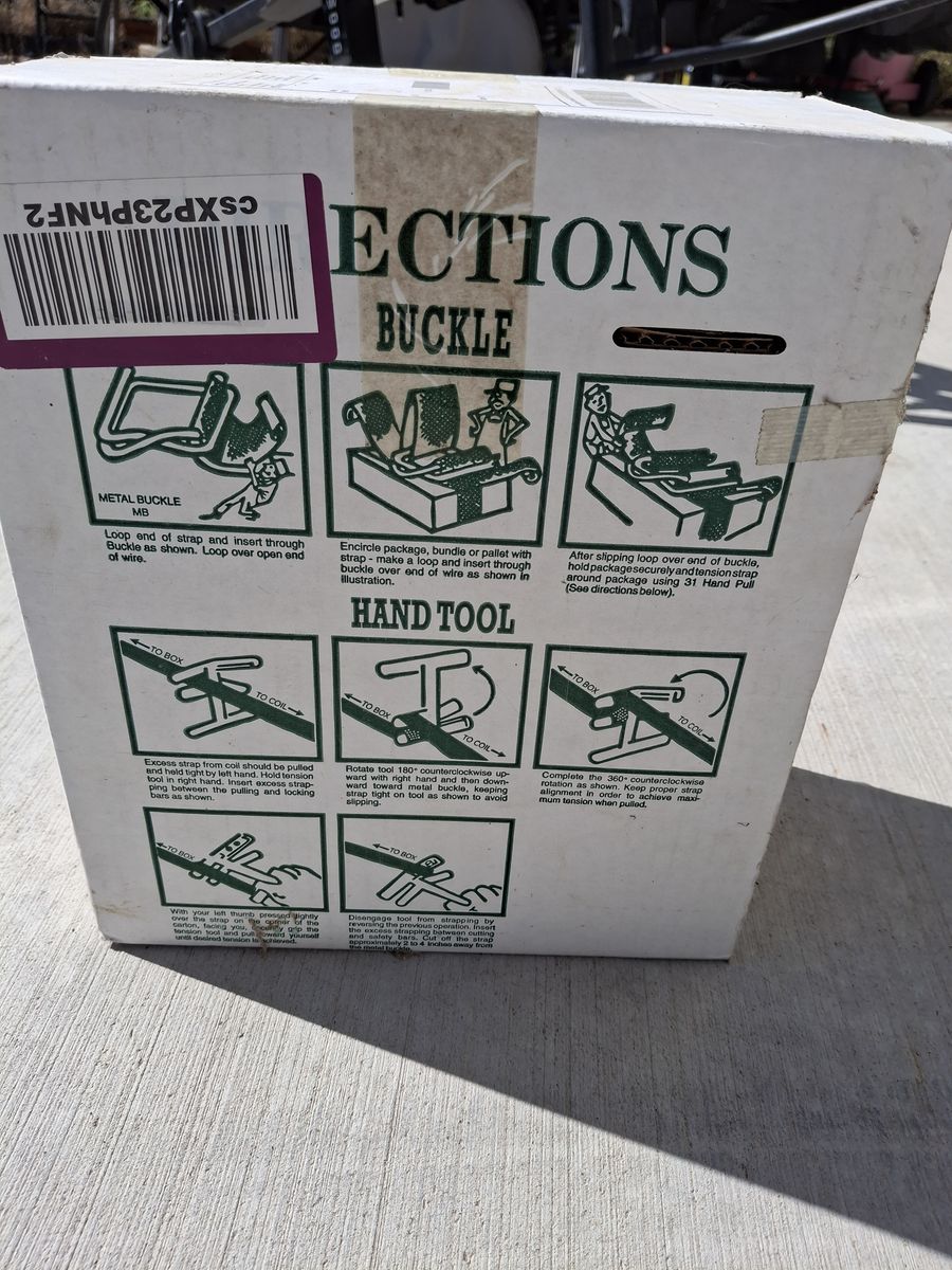 VenmoPolypropylene Strapping 1/2" thick, we used a little but most of the strapping is still in the box.