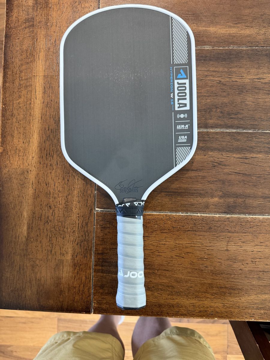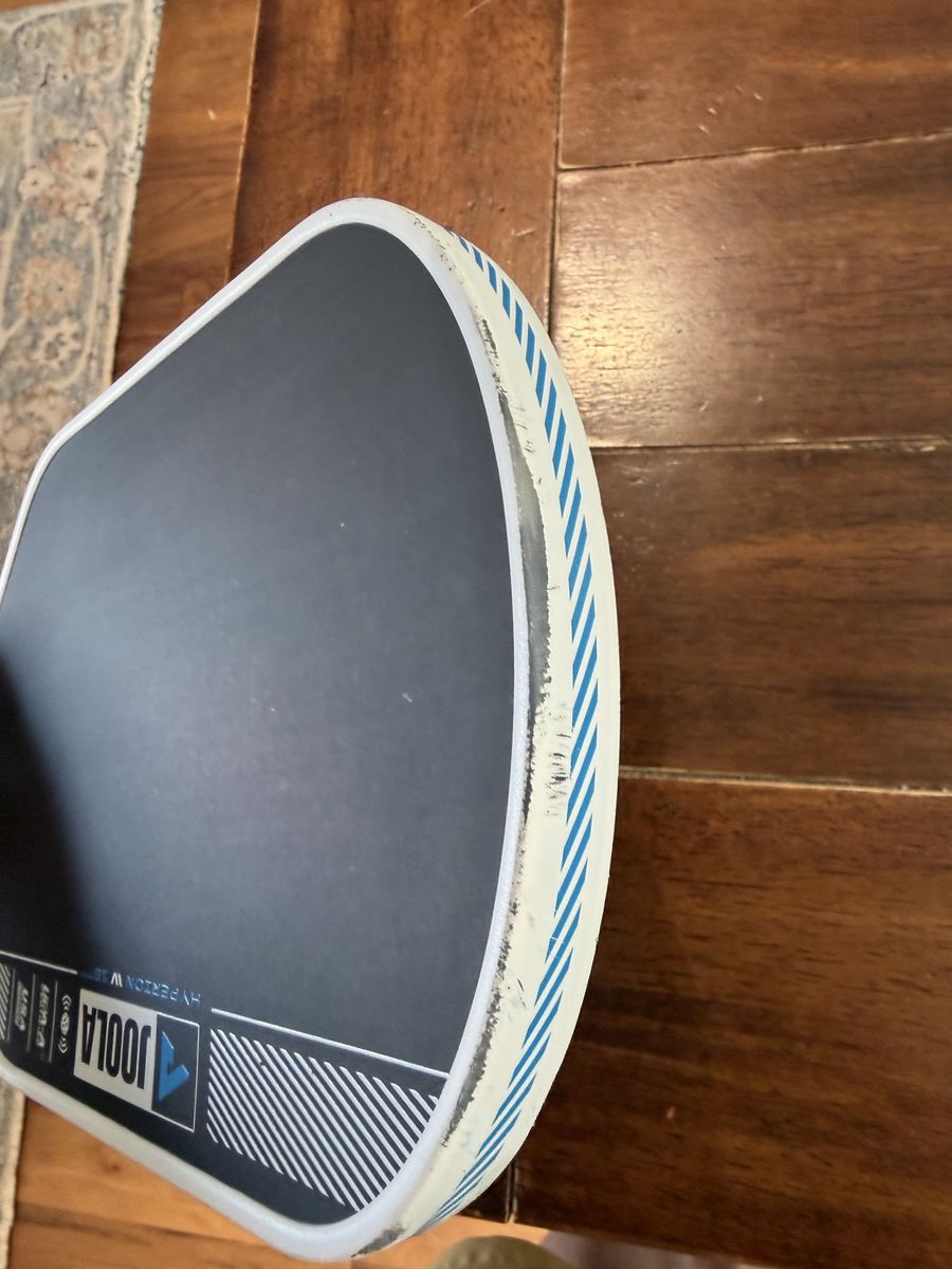 VenmoFor sale is a used Joola Hyperion IV 16mm pickleball paddle. Bought it in December 2025 and used it for about 4 hours a month. Just put on a new grip. The face is near new. There are a couple scrapes on the edge. I’m including edge guard tape if you want to put it on. $140.00 or make an offer.