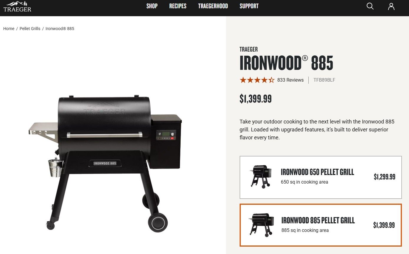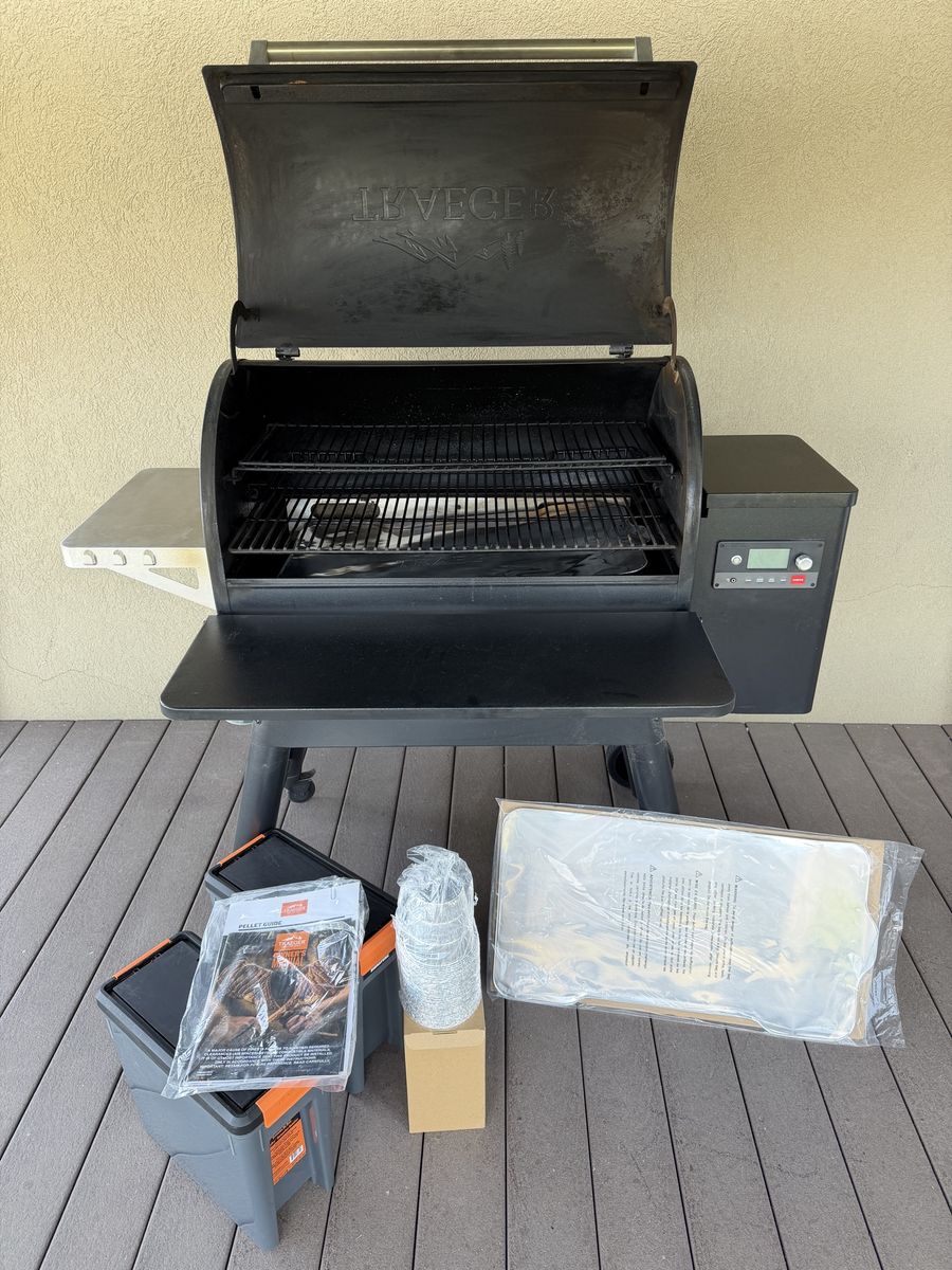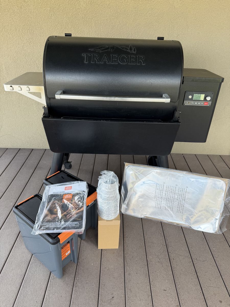 VenmoTraeger Ironwood 885, excellent condition, many extras, including retractable shelf, cover, 2 pellet bins, grease liners, and drip bucket liners.