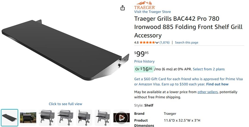 $99 Traeger Grills BAC442 Pro 780 Ironwood 885 Folding Front Shelf Grill Accessory