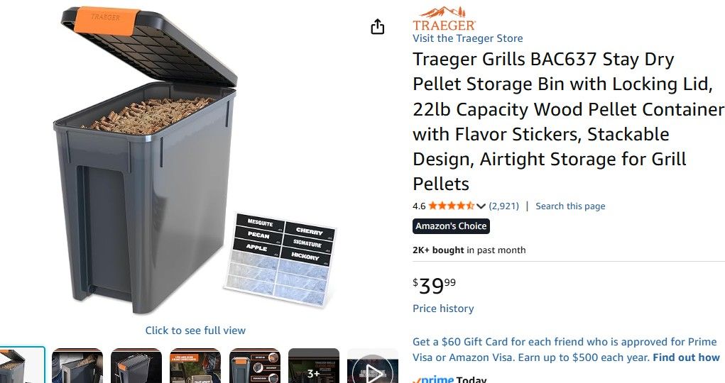 $80 Traeger Grills BAC637 Stay Dry Pellet Storage Bin with Locking Lid, 22lb Capacity Wood Pellet Container with Flavor Stickers, Stackable Design, Airtight Storage for Grill Pellets