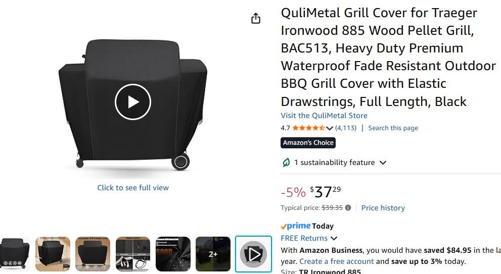 $37 QuliMetal Grill Cover for Traeger Ironwood 885 Wood Pellet Grill, BAC513, Heavy Duty Premium Waterproof Fade Resistant Outdoor BBQ Grill Cover with Elastic Drawstrings, Full Length, Black