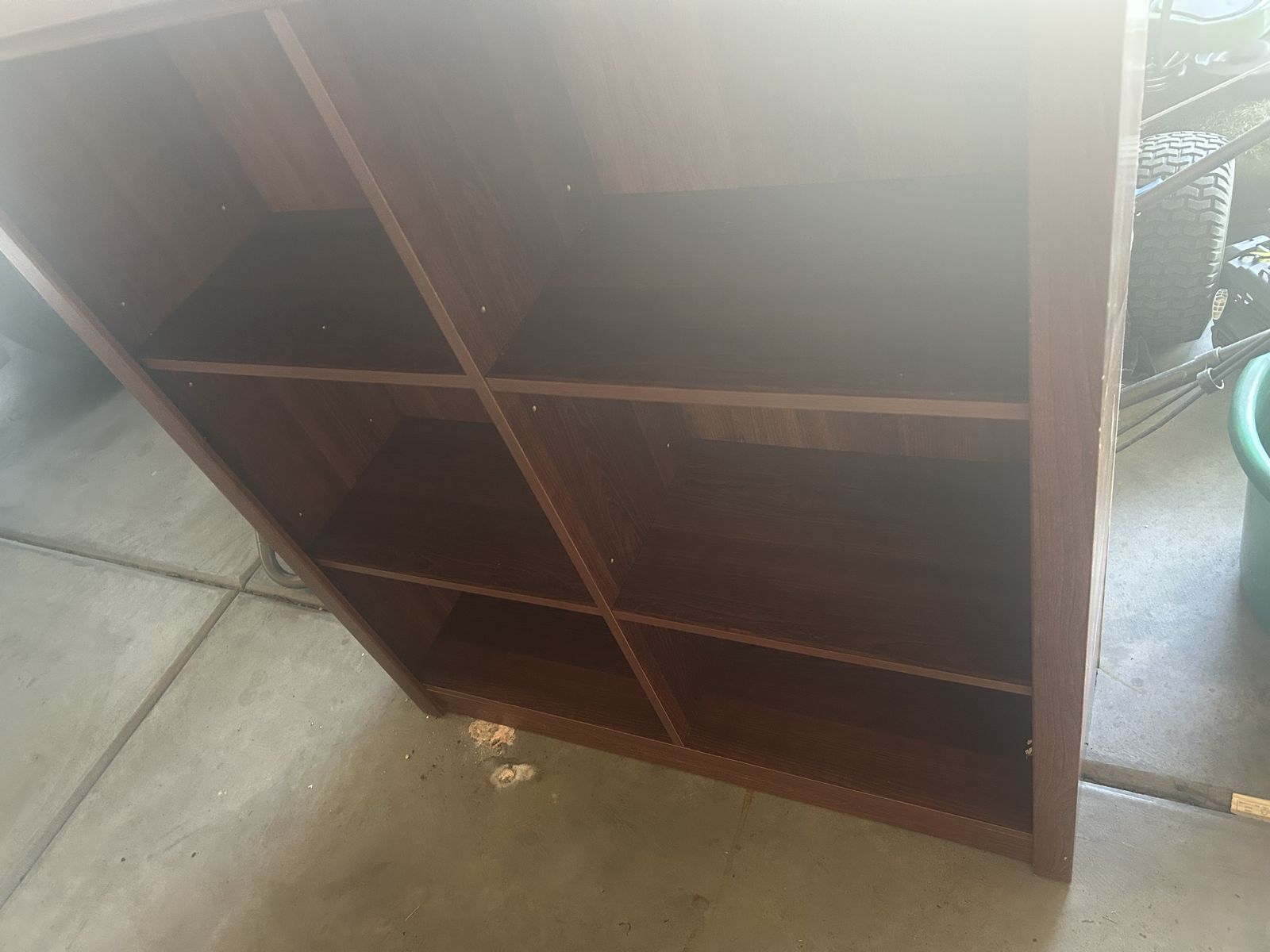 VenmoBookcase that has movable shelves, wood is in pretty good condition scratches here and there. dimensions are 42 inches long and 48 1/2 inches tall and 14 inches wide