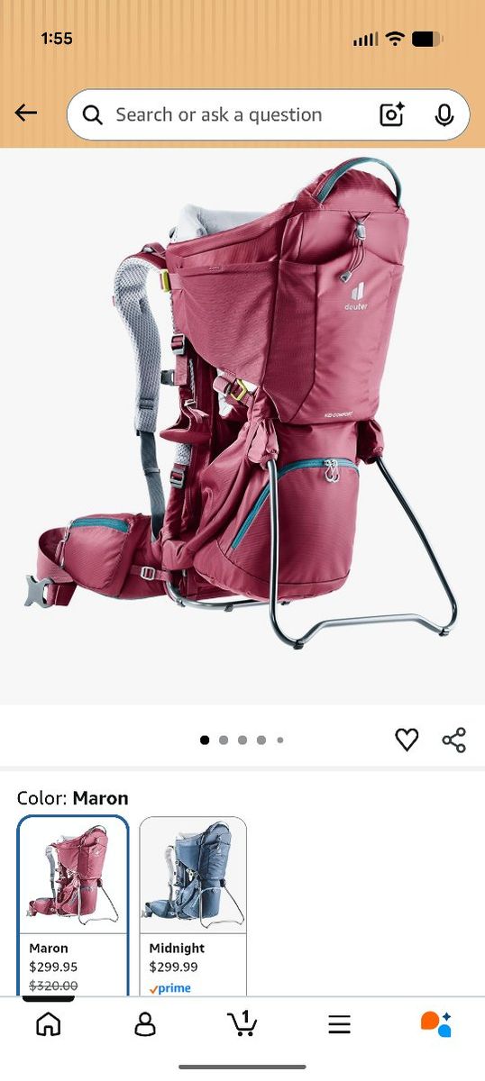 Deuter brand baby hiking carrier. comes with shade. Used maybe four times.