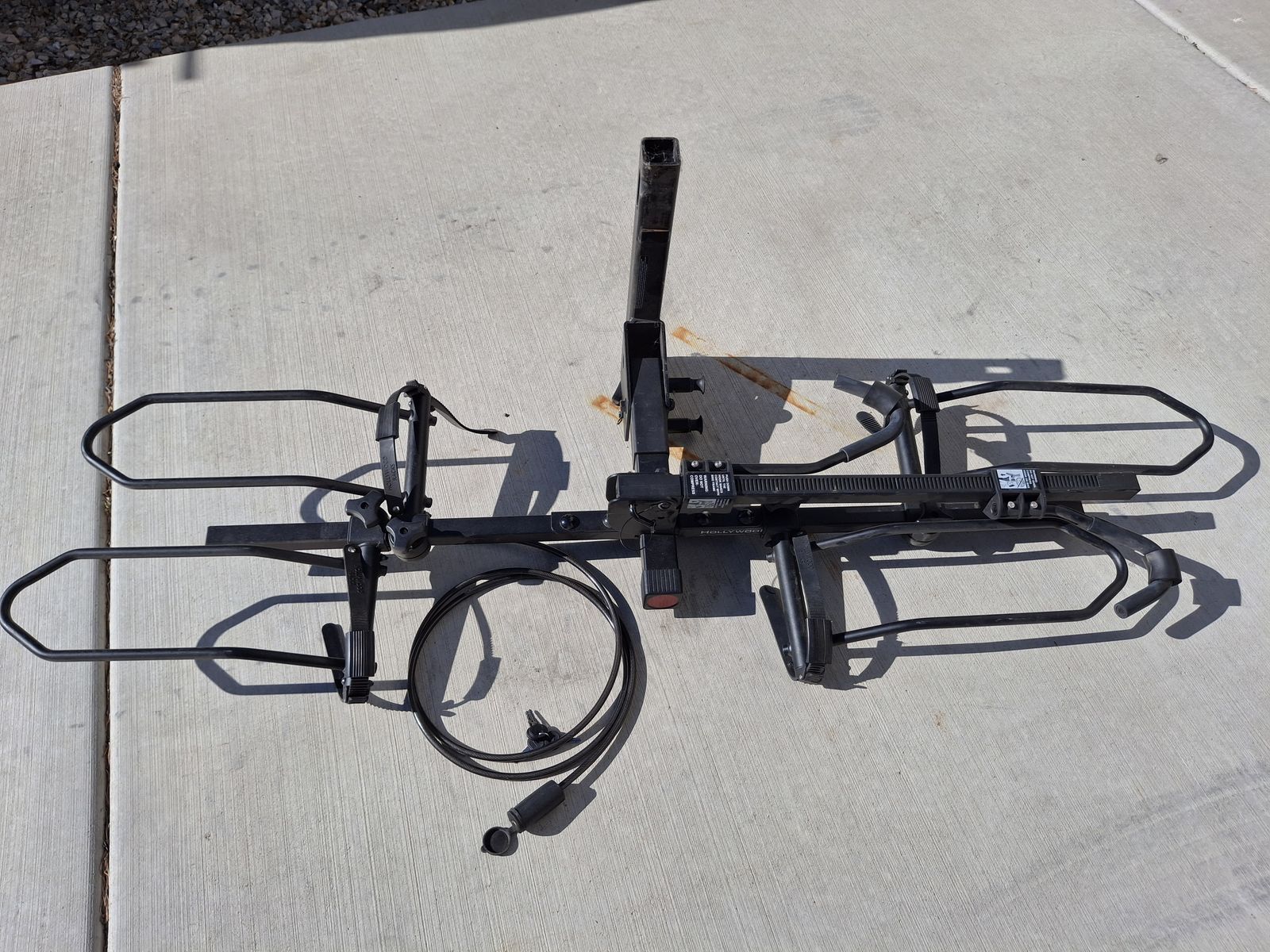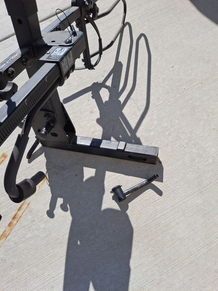 VenmoSelling my Hollywood brand bike rack, holds fat tire bikes. It folds up flat for storage. Comes with a locking pin for hitch, a cable bike lock, and two cross bar adapters for step-thru bikes to secure them to the bike rack.