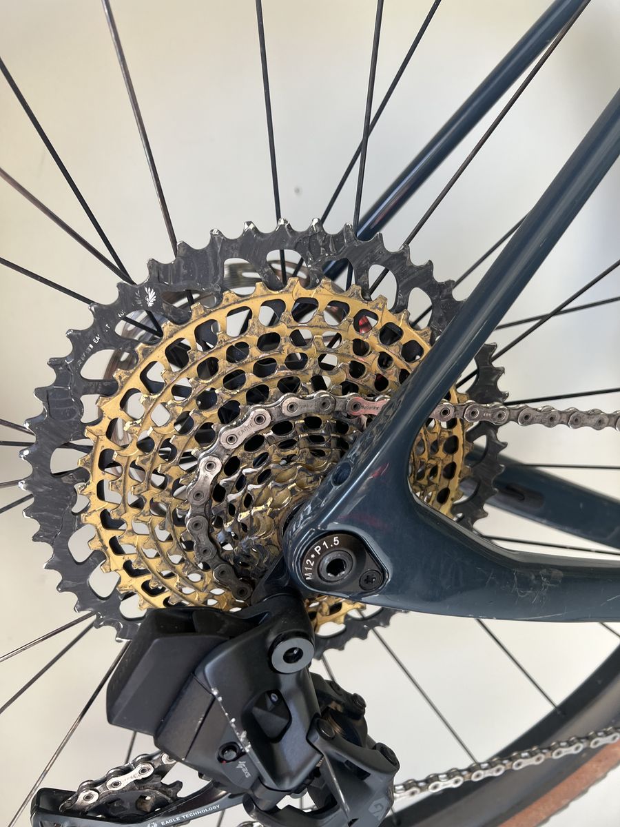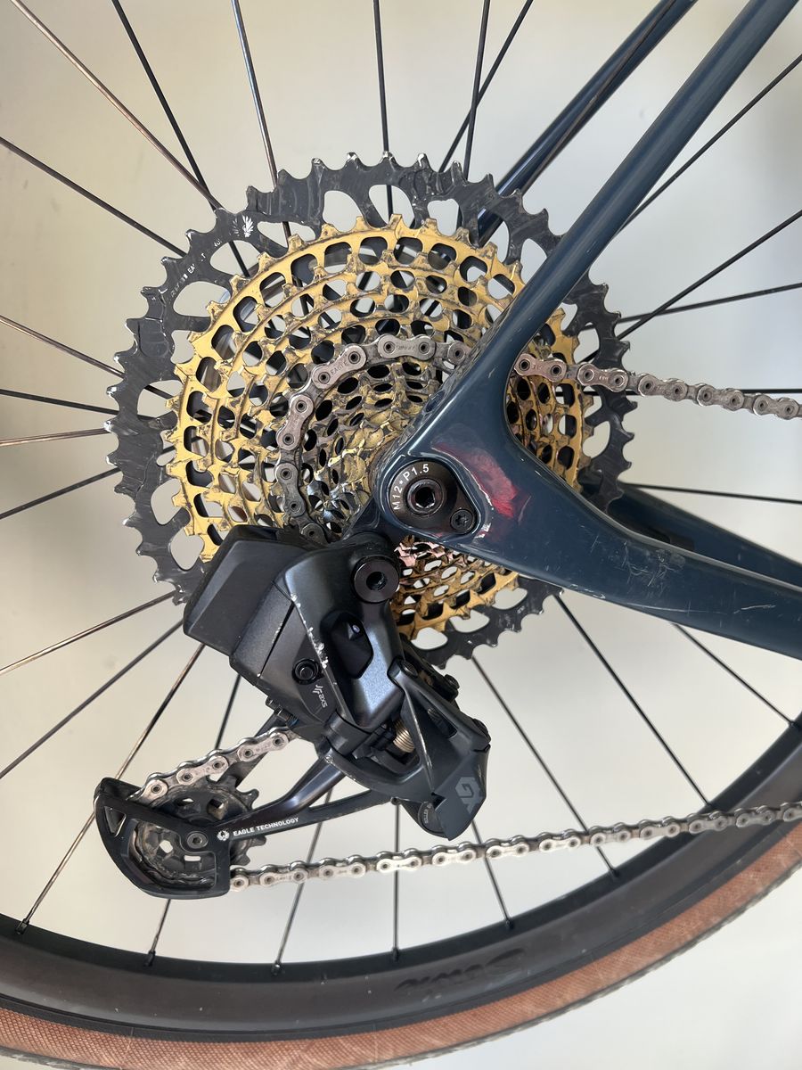 SRAM Eagle drivetrain with Eagle Mtb cassette 10-52 Scribe gravel wheels Brand new socialized seat Rival left side power meter Rival electronic groupset