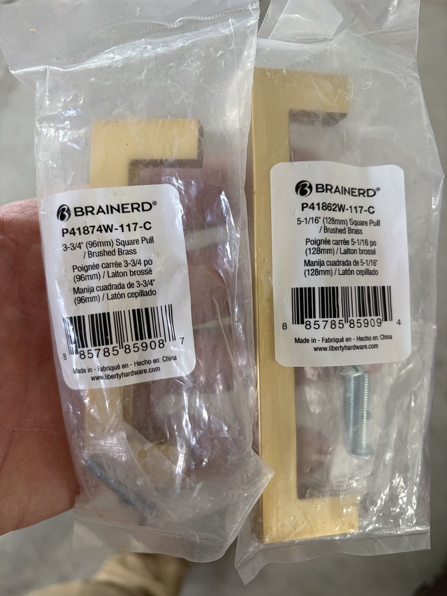 5-1/16 (14) and 3-3/4 (8). 22 total door pulls. Paid over $150. Asking $50 obo.