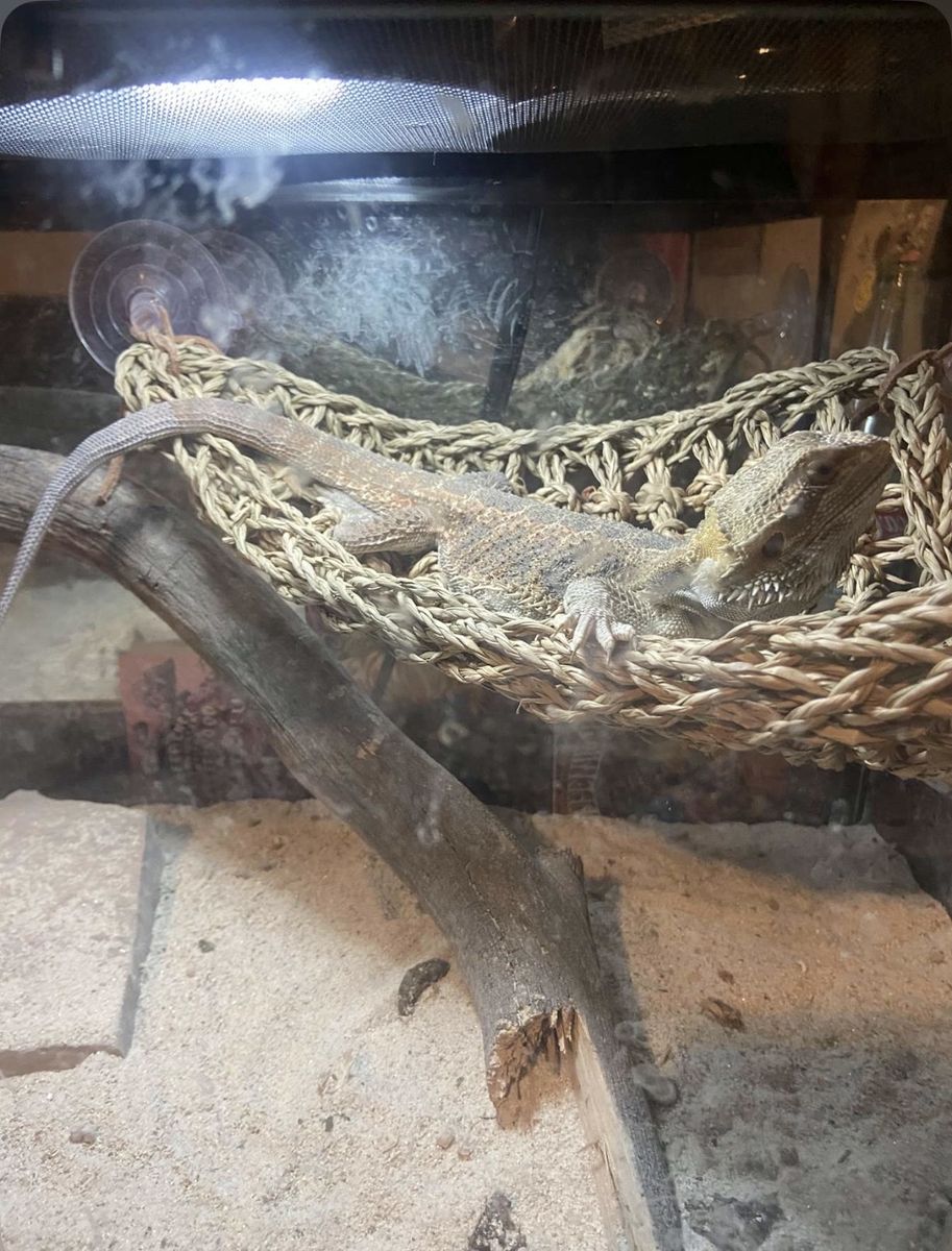 VenmoComes with cage and all the lights he needs. He has the uvb light and heat light. Plus we just bought him the hammock which he loves. He is healthy and vibrant